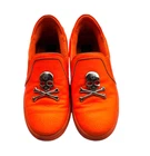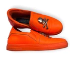 Philipp Plein Ladies Sneakers. SKU: P18S WSC0822 PLE075N WH/MLT. Color: White/Multi. Shoe Style: Slip-On. Vamp Style: Metal Hardware. Upper Material: Leather. Lining Material: Leather. SoleMaterial: Rubber. Philipp Plein White Leather Skull Logo Slip-on Shoes.