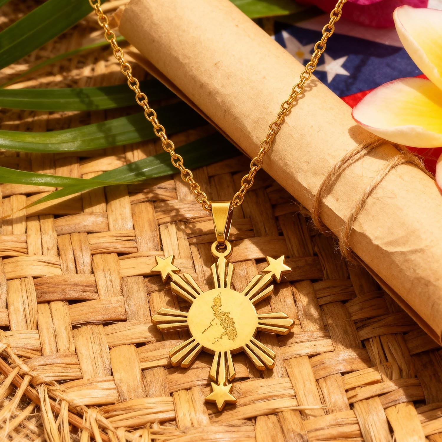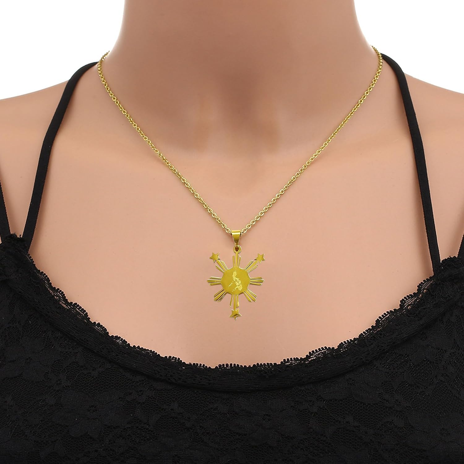 Store New Arrivals Add to Favorite View Feedback Contact Fast deliveries to the customer's home Quality customer service John Make the customers happy! Philippines Sun Necklace for Women Filipino Heritage Gold Pendant Stainless Steel Filipino Pride Gift Description For every Filipina warrior, or diaspora soul longing for home – this radiant sun necklace embodies the courage, hope, and unbreakable spirit of the Philippines. More than jewelry Chain Cable Product Dimensions 1.2 x 1 x 0.5 inches; 0.71 ounces Material Stainless Steel Item Length 1.2 inches Department womens Clasp Lobster ABOUT US We offer the best prices around on high quality products. Our E-store includes media such as books, movies, music and games while offering electronics, toys, sporting apparel, clothing, tools, general home, garden items and more. SHIPPING We are always working hard to ensure your package arrives as soon as possible. Please understand that some factors like weather, high postal traffic, and the performance of shipping companies are outside of our control. We offer free shipping to the lower 48 states and ship within 2 business days of payment, usually sooner. We do not accept P.O. Boxes. Please provide a physical address. For shipping outside of the continental USA, we only use eBay's Global Shipping Program. The item is shipped to KY and then sent to the rest of the world. International customers are responsible for all duties and taxes. Continue to 'check out' to calculate costs for shipping the item to your country. Messages regarding eBay's Global Shipping Program MUST be directed at eBay EXCLUSIVELY. RETURNS We offer a 30-Day Return Policy on items in which you are not completely satisfied with. You have the option of a full-refund or an exchange of the item. No returns are available on items shipped outside of the USA PAYMENT We accept PayPal. CONTACT US This page content is yet to come Please ad us to your favorite seller and visit again later Thank You CUSTOMER SATISFACTION We try our very best to make sure every customer is completely satisfied. If there's a problem, message us! We're happy to help. WE ACCEPT