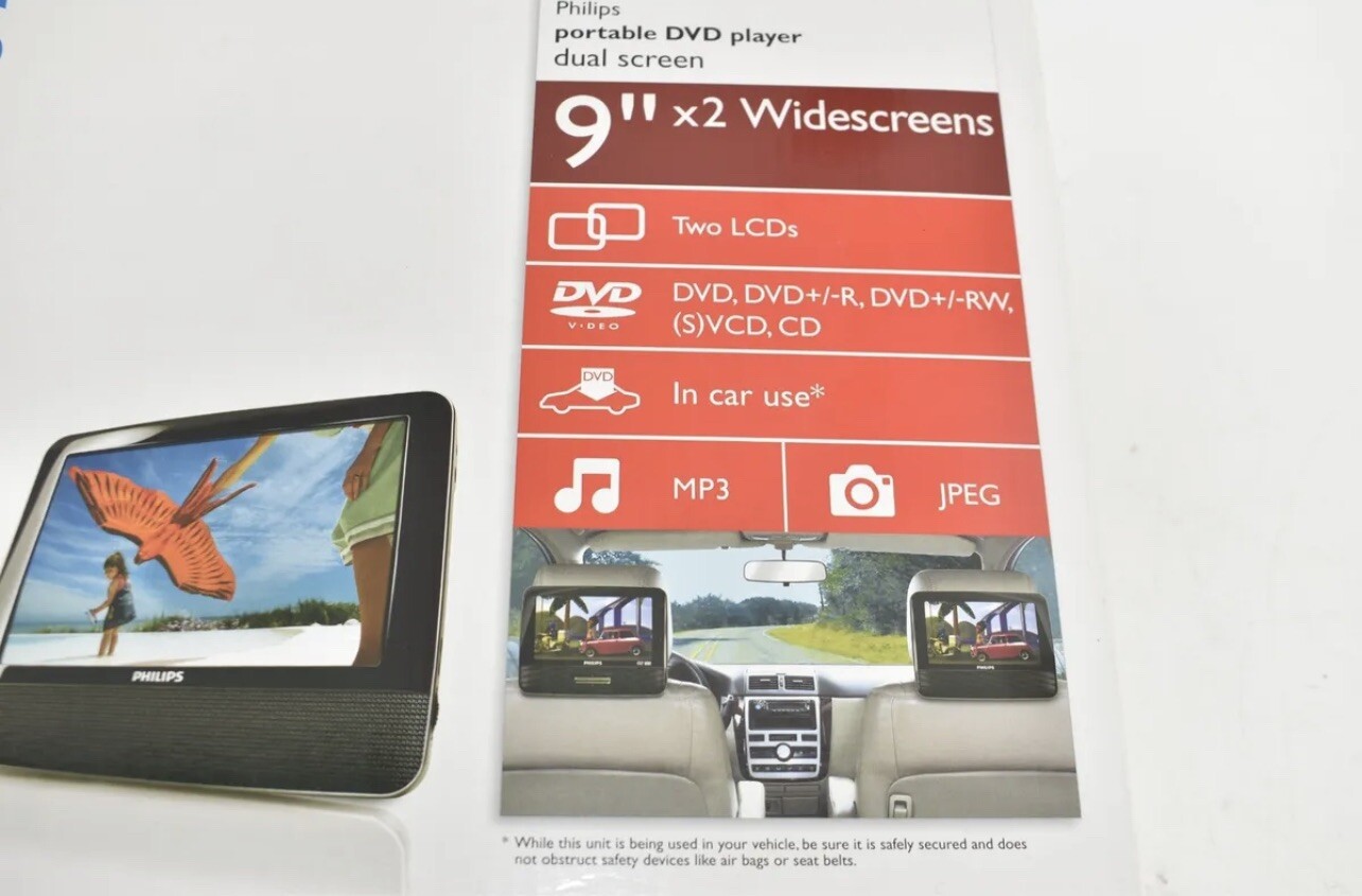 Philips 9"x2 Portable DVD Players Wide screen #PD9012 In Box (6680K) fast shipping good condition