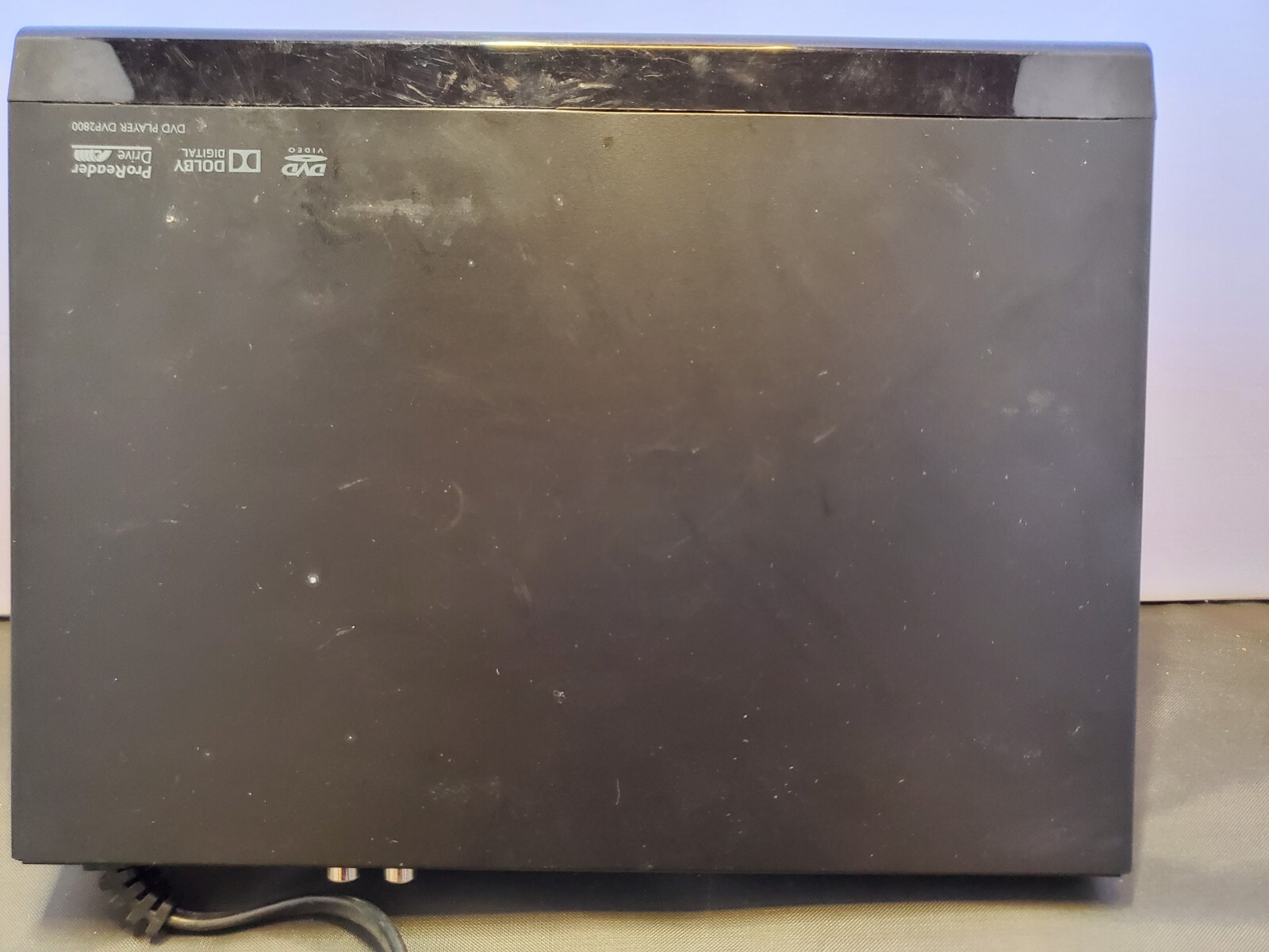Get your hands on a Philips DVD-Video DVD Player Model # DVP2800/F7 that is equipped with Pro-Reader Drive. This player is tested, and it plays DVDs flawlessly. With a sleek black color, this player is a great addition to your home entertainment setup. It is a VCR-DVD type that plays DVDs of different formats. The manufacturer warranty is not available, but you can trust in the durability of this player as it was manufactured in China in 2015. Buy this player now and enjoy your favorite movies in high-quality video and sound.