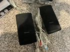 The second concludes all parts, including four speakers, sound bar, speaker, subwoofer, remotes cords, and receiver/DVD player . this has been in storage, but was tested prior to being put in storage. All pieces were working! Experience the ultimate home theater entertainment with the Philips HTS3450/37 5.1 channel DVD/CD player. This system boasts a powerful 1000W RMS power output and features Dolby Digital, DTS, and Dolby Pro Logic II surround sound formats for an immersive audio experience. With USB audio inputs and a wired connectivity option, this home theater speaker system is perfect for any entertainment setup. The Philips HTS3450/37 also includes a remote control for easy operation and is compatible with various playable media formats such as DVD-R, DVD, SVCD, DVD-RW, VCD, and DVD+RW. Playable Media Format DVD-R, CD, SVCD, DVD, Picture CD, DVD-RW, VCD, CD-R, DVD+RW, CD-RW, DVD+R Connectivity-Wired Surround Sound Formats DTS, Dolby Pro Logic II, Dolby Digital Additional Product Features Front Speaker-1 Way Front Panel Connections-USB 1.1 Radio Tuner-AM OTHER Features DVD Player, Component Video Output, USB Port, Progressive Scan Outputs Composite X 1, S-Video X 1, Component X 1 Tuner Presets-40 System Configuration-5.1 Number of Discs-1 Included Components Radio Tuner, DVD Player Inputs Analog Audio X 1, Digital Audio (Coaxial) X 1, Analog Audio X 2 Dialog Enhancer -Yes OSD Danish Remote Control-Universal, Yes Playable File Formats-MP3, DivX, WMA, JPEG, MPEG4, MPEG1, MPEG2