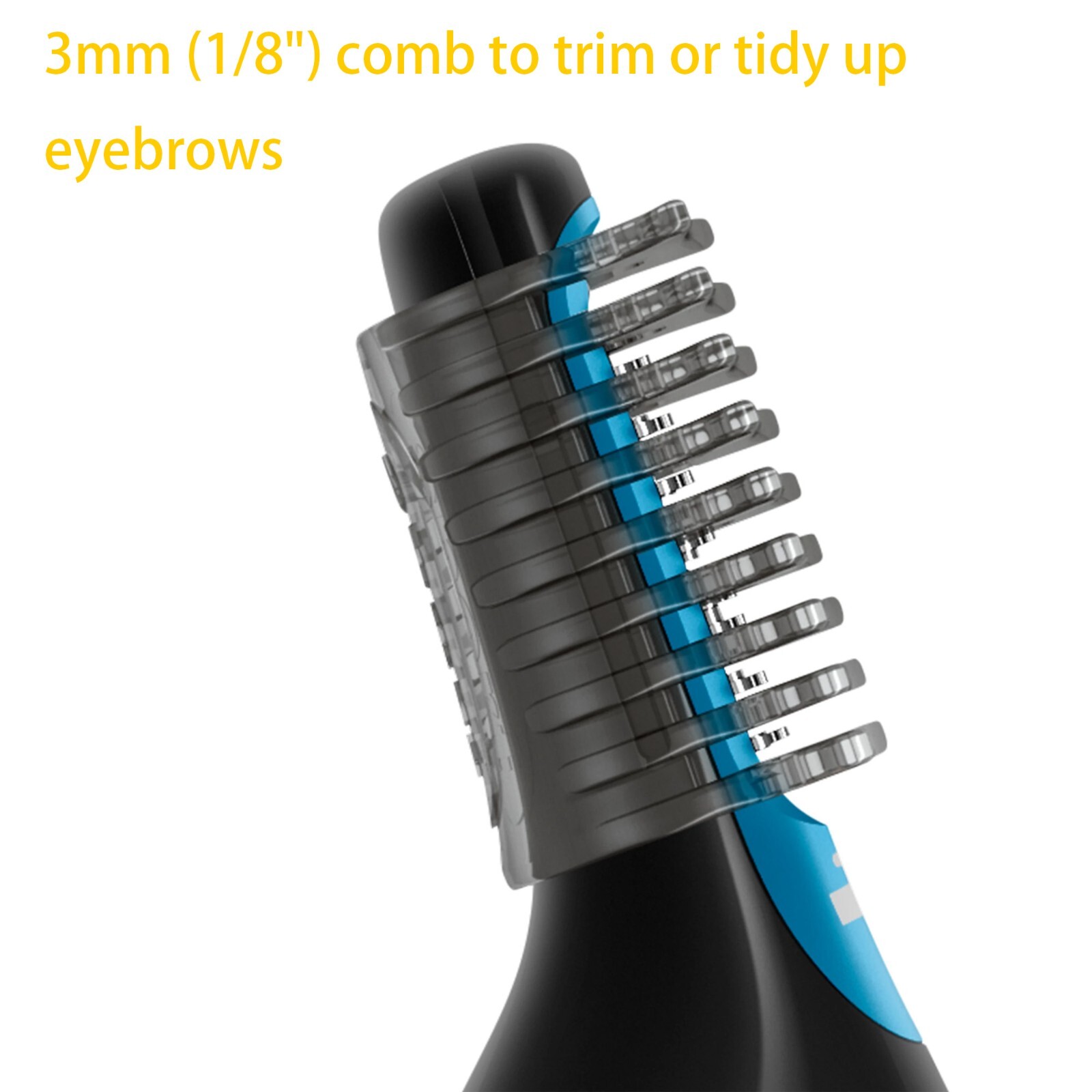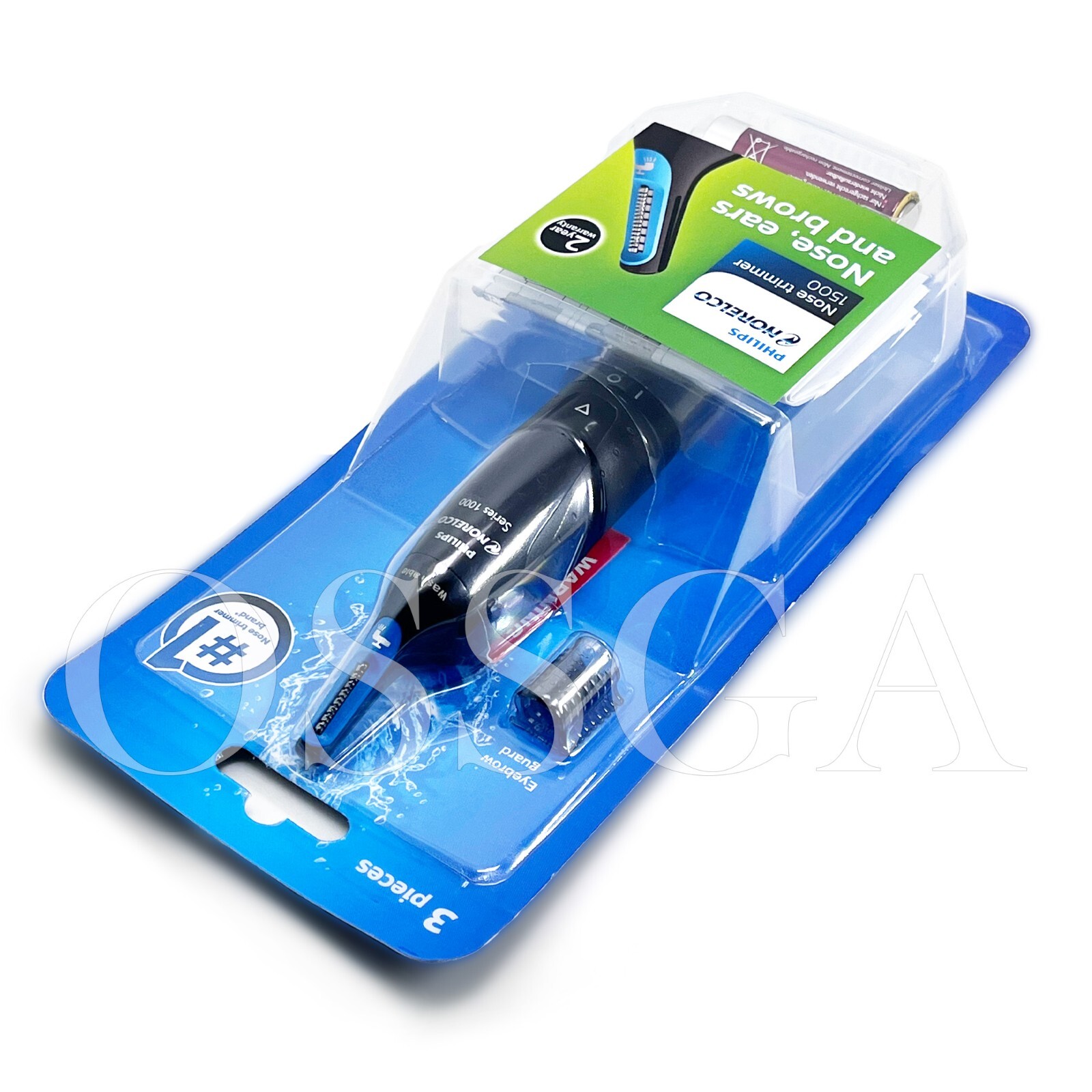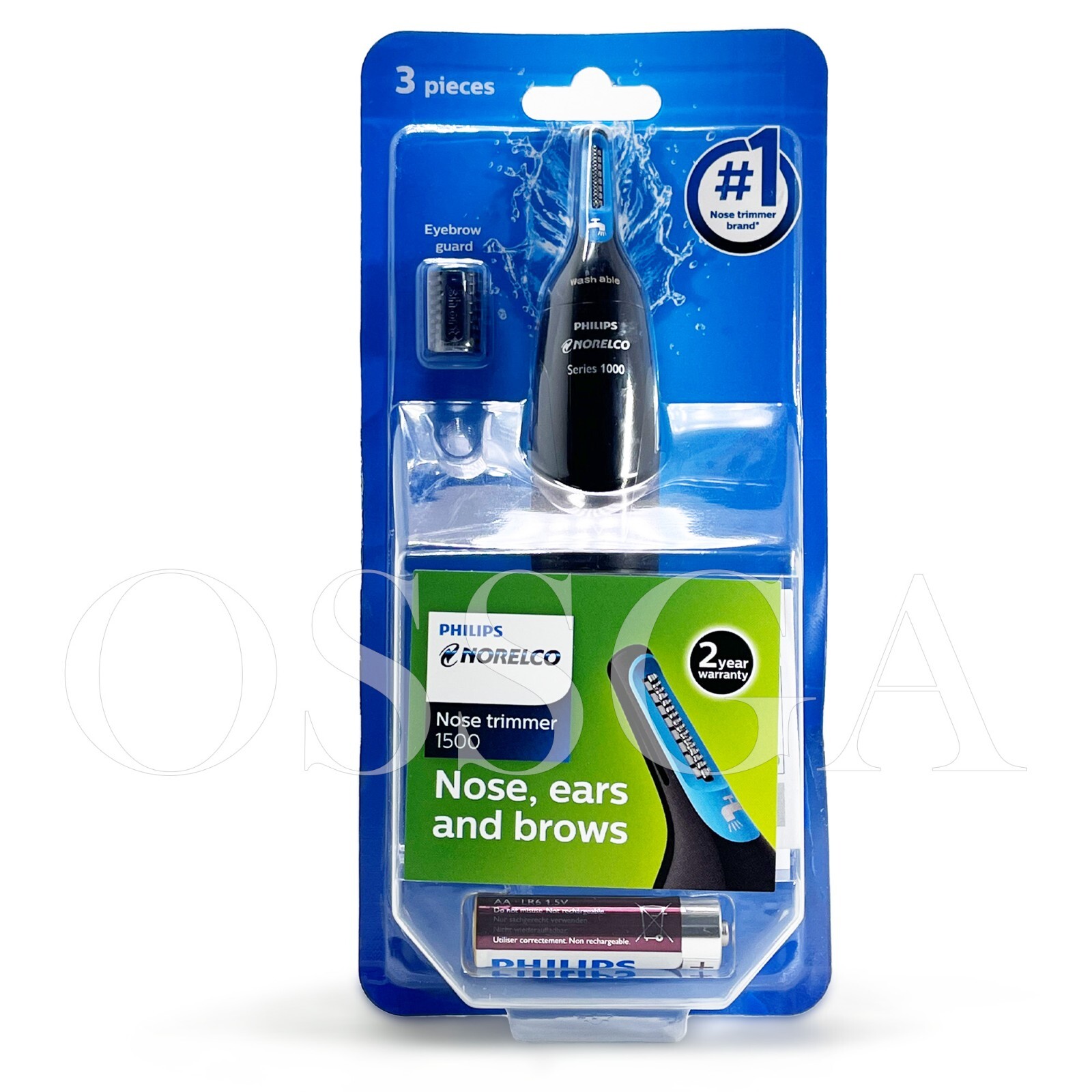 Philips Norelco Nosetrimmer 1500 Nose, ear & eyebrow trimmer Power Power supply AA battery Design Color Black Handle Soft rubber grip Finishing Plastic Cutting system Cutting element Stainless steel blades Number of length settings 2 Cutter width nose trimmer 21mm (13/16") 1 eyebrow comb 3mm (1/8") Ease of use Maintenance free No oil needed Cleaning Fully washable