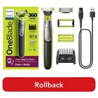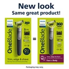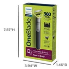 Philips Norelco OneBlade 360 Face + Body trims, edges and shaves any length of hair, even on body. OneBlade 360 Face + Body includes one blade for your face, and another blade with a click-on skin guard for your body. The unique OneBlade shaving technology integrates a fast moving cutter (12000x per minute) with a dual protection system to give you an efficient comfortable shave on longer hairs. The innovative 360 Blade can flex in all directions to adjust to the curves of your face. Easily trim and shave hard‐to‐reach areas — with few strokes and great comfort. OneBlade does not shave too close, so your skin stays comfortable. Click on the 5-in-1 stubble comb for face or use the additional blade with click-on skin guard and 3mm body comb for a fast and even trim on your body and below-the-belt. Forget about using multiple tools, OneBlade 360 Face + Body does it all. OneBlade is fully waterproof, so it is easy to clean. Just rinse it under the tap. You can shave wet or dry, even in the shower. No shaving foam needed. Stainless steel blade lasts up to 4 months of use** to keep that fresh feel. An eject icon will appear on the blade when it's time to consider changing the blade for the best shaving experience. The Lithuim Ion battery delivers up to 60 minutes of run time after a 4 hour charge. 1 handle, 1 360 blade for face, 1 blade for body, 1 5-in-1 comb for face, 1 skin guard for body, 1 body comb, 1 USB-A charging cord (adapter not included), 1 protective cap Rechargeable OneBlade 360 Face + Body can trim, edge, and shave any length of hair. Shave is not too close so your skin stays comfortable. The innovative 360 Blade can flex in all directions to adjust to the curves of your face. The design enables constant skin contact and control. Includes 2 blades, 1 360 blade for your face and 1 blade for your body. Use wet or dry, with or without foam. Click-on skin guard for extra protection on sensitive areas, even below the belt. Includes a 5-in-1 stubble comb + 1 body comb for an even trim on face or body Features Adjustable Brand Philips Norelco Assembled Product Weight 0.44 lb Manufacturer Part Number QP2834/70 Assembled Product Dimensions (L x W x H) 1.46 x 3.94 x 7.87 Inches