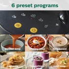 6 preset programs for ultimate versatility. Soup in less than 18 minutes. Easily make a meal for 2 or appetizers for 4. Unique Milk Based Soup Program. Recipe Book Included. Make fresh soup when you want. No waiting, no planning, and no additional appliances necessary. The Philips soup maker automatically heats and blends your favorite soups - in as little as 18 minutes More than just soup. 6 preset programs - Pureed soup, chunky soup, cold soup, compote, smoothies, and thanks to optimized heating profile, milk based soup. Plus, use it as a countertop blender. Make healthy homemade soups, choose what to add without the worries of unknown ingredients found in canned soups. Try making soups like potato, broccoli, tomato, miso and chicken noodle soup. Includes a recipe book with 38 recipes and expert tips. Plus, of the 38 recipes, 13 can be used as a soup cleanse. They're marked with a special leaf icon. Enjoy perfectly textured soups and more with the unique blade design. With a 1.2 liter capacity, you can easily make a meal for 2 or appetizers for 4. Made for the USA. Voltage: 110/120. Power: 1000 watts