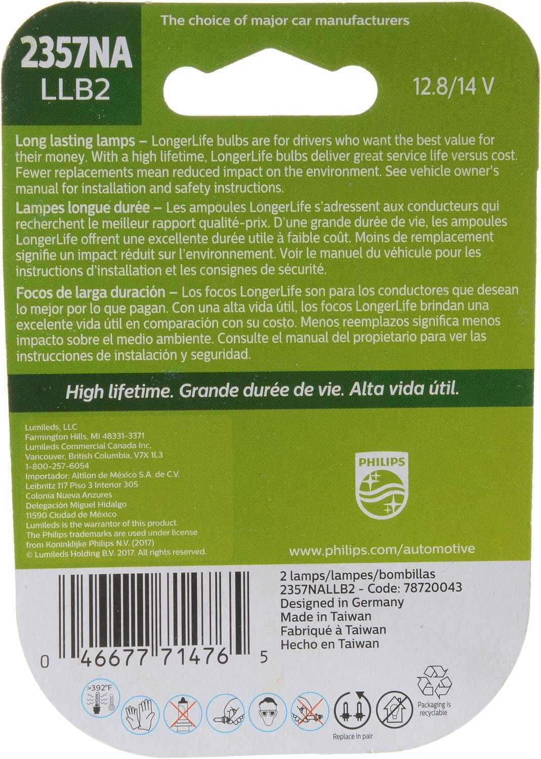 Phillips 2357NALLB2 LongerLife Miniature 2357NALL Turn Signal Light Bulb Philips 2357NALLB2 Turn Signal Light Bulb Turn Signal Light Bulb SPECIFICATIONS: Bulb Base Type: BAY15d Bulb Color: Amber Contact Quantity: 3 Filament Quantity: 2 Push or Twist Type: Twist Type Voltage: 12.8/14 2H Wattage: 28.2/8.26 99 This item may interchange to the following part numbers from other brands. This is provided for reference only and does not guarantee that the part your are buying is identical to the part numbers from the brands listed below. To confirm that this part fits your vehicle, enter your vehicles Year, Make, Model, Trim and Engine in the Compatibility Table. Champion BP2357NALL Philips LongerLife bulbs are for drivers who want the best value for their money. Fits what vehicles: 1986-1988 Ford Taurus, 1986-1987 Ford Tempo, 1986-1987 Ford Topaz, 1986-1987 Mercury Lynx, 1986-1987 Mercury Topaz, 1987-1988 Ford Cougar, 1987 Ford Mustang, 1987-1988 Ford Thunderbird, 1987-1988 Mercury Cougar, 1987-1988 Mercury Sable, 1988-1991 Chevrolet C1500, 1988-1991 Chevrolet C2500, 1988-1991 Chevrolet C3500, 1988-1991 Chevrolet K1500, 1988-1991 Chevrolet K2500, 1988-1991 Chevrolet K3500, 1988 Chevrolet R20, 1988 Chevrolet R30, 1988 Chevrolet V30, 1988-1991 GMC C1500, 1988-1991 GMC C2500, 1988-1991 GMC C3500, 1988-1991 GMC K1500, 1988-1991 GMC K2500, 1988-1991 GMC K3500, 1988-1989 GMC R2500, 1988-1991 GMC R3500, 1988-1991 GMC V3500, 1988-1990 Mercury Colony Park, 1988-1990 Mercury Grand Marquis, 1993-1999 Chevrolet C1500, 1993-2000 Chevrolet C2500, 1993-2000 Chevrolet C3500, 1993-1999 Chevrolet K1500, 1993-2000 Chevrolet K2500, 1993-2000 Chevrolet K3500, 1989 Chevrolet R2500, 1989-1991 Chevrolet R3500, 1989-1991 Chevrolet V3500, 1993-1998 GMC C1500, 1993-2000 GMC C2500, 1993-2000 GMC C3500, 1993-1998 GMC K1500, 1993-2000 GMC K2500, 1993-2000 GMC K3500, 1989-2019 Hyundai Sonata, 1989-1992 Jeep Cherokee, 1989-1990 Jeep Wagoneer, 1992-1994 Ford Tempo, 1992-1994 Ford Topaz, 1992-1994 Mercury Topaz, 1991-1996 Buick Century, 1991-2002 GMC C3500HD, 1992-1999 Cadillac Eldorado, 1992-1997 Cadillac Seville, 1992-1994 Ford Ghia, 1992 Jeep Comanche, 1993-1994 Chevrolet Blazer, 1993-1999 Chevrolet C1500 Suburban, 1993-1999 Chevrolet C2500 Suburban, 1993-1994 Chevrolet Cavalier, 1993-1999 Chevrolet K1500 Suburban, 1993-1999 Chevrolet K2500 Suburban, 1993-1999 GMC C1500 Suburban, 1993-1999 GMC C2500 Suburban, 1993-1999 GMC K1500 Suburban, 1993-1999 GMC K2500 Suburban, 1993-2000 GMC Yukon, 1993-1995 Hyundai Scoupe, 1993 Mercedes-Benz 500SEC, 1993 Mercedes-Benz 600SEC, 1994-2006 Mercedes-Benz S500, 1994-1999 Mercedes-Benz S600, 1995-2000 Chevrolet Tahoe, 1995-1998 Ford Contour, 1995-2002 Hyundai Accent, 1995-2002 Kia Sportage, 1995-1999 Mercedes-Benz S320, 1995 Mercedes-Benz S350, 1995-1999 Mercedes-Benz S420, 2001-2006 Mercedes-Benz S600, 1996-1999 Audi A4, 1996-1999 Audi A4 Quattro, 1996-2003 Hyundai Elantra, 1996-1997 Mercedes-Benz SL320, 1996-2002 Mercedes-Benz SL500, 1996-2002 Mercedes-Benz SL600, 1997-1999 Audi A8, 1997-2003 Audi A8 Quattro, 1997-2001 Hyundai Tiburon, 1997-2000 Mercedes-Benz C230, 1997-2000 Mercedes-Benz C280, 1997 Mercedes-Benz C36 AMG, 1997-2003 Mercedes-Benz SLK230, 1998-2001 Audi A6, 1998-2001 Audi A6 Quattro, 2006-2020 Hyundai Accent, 1998-2001 Kia Sephia, 1998-2000 Mercedes-Benz C43 AMG, 1998-1999 Mercedes-Benz CL500, 1998-1999 Mercedes-Benz CL600, 1998-2005 Volkswagen Beetle, 1999-2001 BMW 740i, 1999-2001 BMW 740iL, 1999-2001 BMW 750iL, 1999-2000 Cadillac Escalade, 1999 GMC Sierra 2500, 2007-2020 Hyundai Elantra, 2003-2007 Mercedes-Benz C230, 1999 Volkswagen Golf, 2000-2002 BMW Z3, 2000 Chevrolet C3500HD, 2000 Chevrolet Suburban 1500, 2000 Chevrolet Suburban 2500, 2005-2008 Hyundai Tiburon, 2000-2006 Kia Spectra, 2000-2006 Mercedes-Benz S430, 2001-2005 Audi Allroad Quattro, 2001-2003 Audi S8, 2001-2006 Hyundai Santa Fe, 2001-2002 Kia Magentis, 2001-2002 Kia Optima, 2001-2005 Kia Rio, 2009-2020 Kia Sportage, 2001-2006 Mercedes-Benz S55 AMG, 2001-2003 Mercedes-Benz SLK320, 2006-2007 Mercedes-Benz C280, 2002-2003 Mercedes-Benz SLK32 AMG, 2005-2010 Kia Magentis, 2005-2008 Kia Optima, 2003-2006 Kia Sorento, 2003-2008 Mazda 6, 2003-2005 Mercedes-Benz C240, 2003-2004 Mercedes-Benz C32 AMG, 2003-2005 Mercedes-Benz C320, 2005-2006 Mercedes-Benz CL500, 2005-2006 Mercedes-Benz CL600, 2004-2010 Chevrolet Optra, 2004-2005 Hyundai XG350, 2004-2006 Kia Amanti, 2004-2005 Mercedes-Benz CLK320, 2004-2005 Mercedes-Benz CLK500, 2004-2005 Mercedes-Benz CLK55 AMG, 2004-2007 Mercedes-Benz E320, 2004-2006 Mercedes-Benz E500, 2004-2006 Mercedes-Benz E55 AMG, 2004-2008 Suzuki Forenza, 2011-2020 Kia Optima, 2010-2011 Kia Rio, 2005-2006 Kia Spectra5, 2005-2007 Mercedes-Benz C55 AMG, 2005-2006 Mercedes-Benz CL55 AMG, 2005-2006 Mercedes-Benz CL65 AMG, 2006 Mercedes-Benz S350, 2005-2008 Suzuki Reno, 2006-2014 Dodge Attitude, 2006-2010 Hyundai Azera, 2006-2012 Kia Sedona, 2006-2007 Mercedes-Benz C350, 2006-2007 Mercedes-Benz E350, 2006 Mercedes-Benz S65 AMG, 2006-2007 Subaru B9 Tribeca, 2007-2010 Hyundai Entourage, 2013-2018 Hyundai Santa Fe, 2007-2009 Hyundai Veracruz, 2007-2012 Kia Rondo, 2014-2020 Kia Sedona, 2007 Mercedes-Benz E550, 2007 Mercedes-Benz E63 AMG, 2007-2010 Pontiac G3, 2014-2017 Kia Rondo, 2008-2009 Pontiac G8, 2008-2014 Subaru Tribeca, 2009-2017 Chevrolet Aveo, 2009-2011 Chevrolet Aveo5, 2009-2015 Hyundai Genesis, 2009-2011 Kia Borrego, 2009 Pontiac G3 Wave, 2010-2016 Hyundai Genesis Coupe, 2010-2020 Hyundai Tucson, 2010-2018 Kia Forte, 2010-2017 Kia Forte Koup, 2010-2011 Kia Rio5, 2014-2020 Kia Sorento, 2010-2016 Suzuki Kizashi, 2018-2020 Kia Rio, 2011-2016 Mini Cooper Countryman, 2012-2018 Kia Forte5, 2012-2019 Kia Soul, 2013-2014 Hyundai Elantra Coupe, 2013-2018 Hyundai Elantra GT, 2013-2018 Hyundai Santa Fe Sport, 2013-2018 Hyundai Santa Fe XL, 2013-2016 Mini Cooper Paceman, 2020 Hyundai Elantra GT, 2014-2016 Kia Cadenza, 2015 Hyundai ix35, 2017-2019 Genesis G80, 2017-2020 Hyundai Ioniq, 2018-2020 Kia Sting