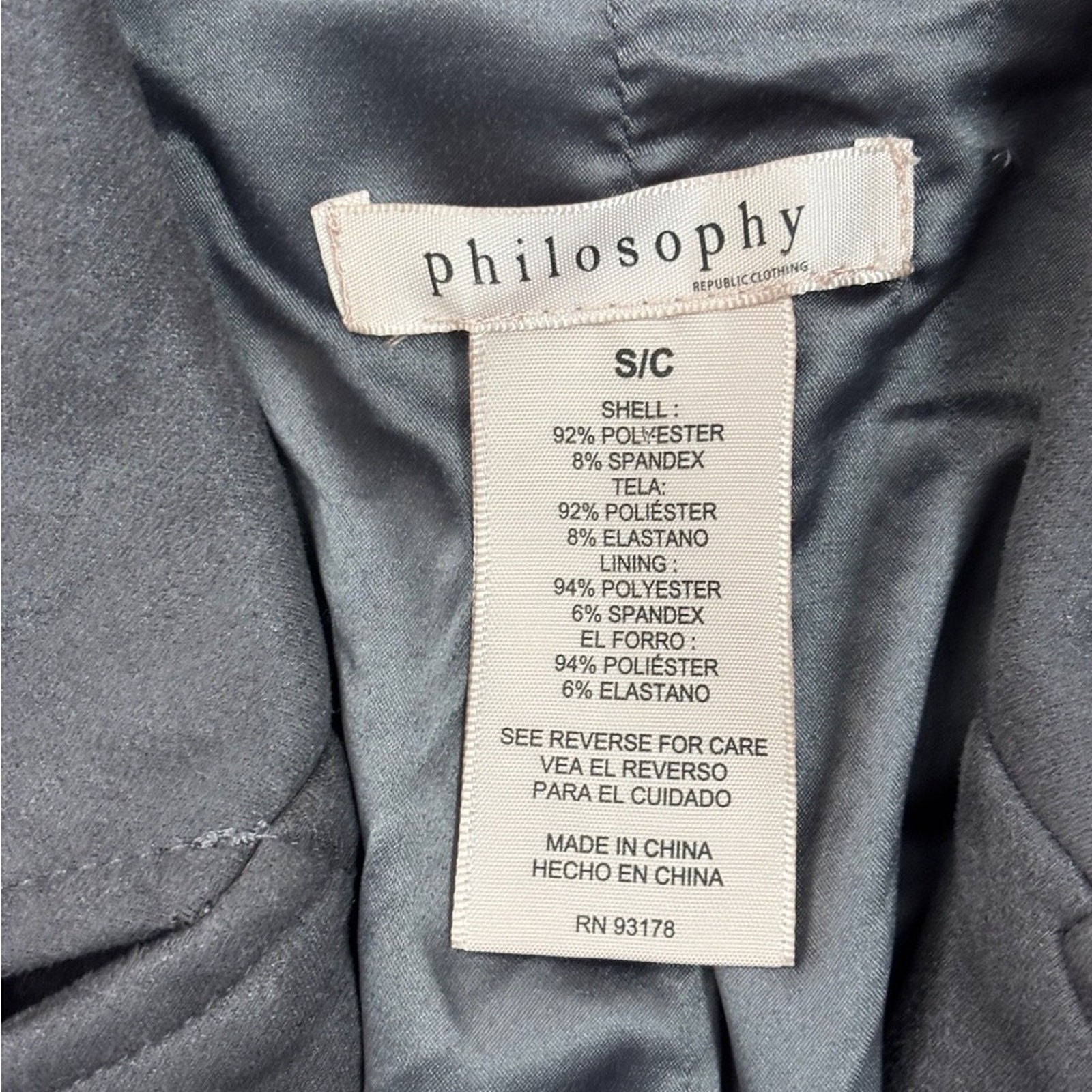 Philosophy Women's Charcoal Gray Faux Leather Suede Moto Jacket Size Small Used, excellent condition. Super soft, faux suede material. Lined. Asymetrical zipper closure. Collared. Zippered pockets. Approximate measurements shown in photos.