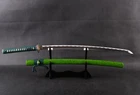 Product Parameter: Number: LQ151216 Bo-hi: Yes,can be removed for free Hamon: Yes,can be removed for free Material: 1095 high carbon steel Overall: 103 cm / 40.6'' Blade: 70 cm / 27.6'' Tsuka: 26 cm / 10.24'' Width: 3.2 cm / 1.26'' Thickness: 0.7 cm / 0.28'' HRC(Hardness): 56 Tsuba: Alloy,phoenix style Shape: Shinogidukuri Nakago: Full-tang (2 meguki fix the handle vertically, very firm) Kissaki: medium(chūkissaki) Rayskin: Genuine shark rayskin It's a functional sword.Professionals can use it to cut bamboo,paper, water bottles,etc. Craft: Fully hand forged,traditional hand-polishing,water quenching,etc. Fittings: Brass habaki & seppa+ alloy fuchi & kashira + Japanese synthetic silk sageo/ito Ancient quenching: Modern vacuum heat treatment can meet the hardness requirements of most swords, but the traditional quenching method has better effect, can soften the medium strip steel, and the hardness is higher. Manual grinding: Using the unique bright stone of Longquan Town, hand grinding, very test sword casting skills and technology, grinding out the pattern effect is special texture! Tsuba & Fuchi & Kashira & Habaki Saya Additional Service About us Delivery details Tsuba & Fuchi & Kashira & Habaki Alloy Tsuba Iron Tsuba ( extra $10) Brass Set ( extral $50 ) Alloy Fuchi & Kashira Habaki TSUKA-ITO & SAGEO Tsuka-ito is the wrapping of the tsuka and sageo (下緒 or 下げ緒) is a hanging cord that is passed through the hole in the kurigata (栗形) of a Japanese sword's saya. SAMEGAWA Samegawa(鮫皮)is the ray or shark skin wrapping of the tsuka (handle/hilt). Saya Please contact us before placing an order to see if there is any stock available, as well as any additional charges. OX Horn Saya Additional Service It's free for engraving English words, Chinese Characters and Japanese Kanji , etc. You need pay extral $20-30 for engraving patterns. Hamon We can add or remove the machine-made wavy hamon for free. Bo-hi ( Blood Groove) Usually thought be used for bloodletting only. It is also used to lighten the weight of the sword. We can add or remove Bo-hi for free Sharpness Most of our blades are sharp. We can also make the blade unsharpened for free if you require. Colored Blade If you want to change to a different color blade, please contact us before purchase. Matching Swords Set If you buy one katana, we can make a matching Wakizashi or Tanto for you. The price varies from different swords. Please contact us if you need make custom matching set. About us We have our own sword-casting factory. The factory is located in Longquan, a small town with a long history of sword-casting in China. Most of the famous Swords in China are made there. Rich raw materials, skilled technology, traditional sword casting technology from generation to generation. Manual production really takes a lot of time. We will prepare most products in advance ,and arrange delivery within about a week. However, sometimes the delivery time is delayed due to weather or raw materials,etc. we hope to get your understanding. Feel free to contact us to inquire about the status of your order. Each handmade sword is unique. Our swords are great for gifts or for your own collection. Our swordsmithing master makes every sword attentively, hope you can feel our sincerity. We will also give you the best customer service, any questions please feel free to contact us. Delivery details a) Import duties, taxes and charges are not included in the item price or shipping charges . These charges are the buyer’s responsibility. b) If you do not receive the package, or the package is damaged during transportation. We'll take care of it. Please feel free to buy. c) If it is mentioned in the product description that the package includes the sword bag or sword holder , the style will be random. The sword holder or sword bag on the ebay picture is the props we use for shooting. If you really like a style, please contact us before buying. d) If you have any problem after recieve the package (wrong size, wrong style, etc.). We always provide you with the best after-sales service. Please give us a chance to help you before you give us a bad feedback . Thank you very much!