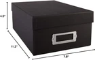 Organize with Ease: Keep your cherished memories in perfect order with this classic storage box, designed to neatly store photos, mementos, keepsakes, and more. Ample Capacity: Store over 1,000 photos, 14 DVDs, or 18 CDs in this perfectly sized 11.2” x 7.8” x 4.5” (28.4cm x 19.8cm x 11.4cm) black box, ensuring your memories are safely stored and easily accessible. Stackable Convenience: Featuring a metal label holder on the front, these boxes can be stacked and stowed, allowing you to create a space-efficient and organized storage solution for your treasured items. Quality Materials: Crafted from acid-free paper and metal, each box includes a lid and name plate, providing a secure and protective environment for your valued possessions.