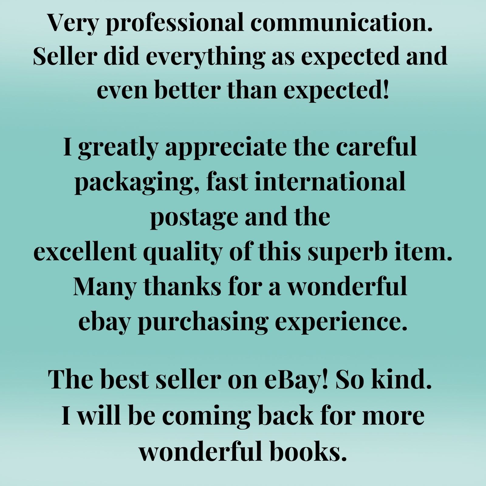 ⭐⭐⭐⭐⭐ An outstanding experience—truly grateful! As a dedicated paperback collector, I look for precision, care, and presentation, and this seller delivered on all fronts. The paperback, featuring breathtaking cover art, arrived in pristine condition, exactly as described. Communication was fast and courteous (even with a hand-signed greeting card), shipping swift, packaging secure, and the shipping cost more than fair. A flawless, satisfying transaction—highly recommended to fellow collectors!