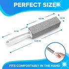 About this item Surface Compatibility: Effectively removes hard water stains, calcium deposits, and stubborn grime from porcelain, pool tiles, toilets, barbecue grills, steel, and stone surfaces. Abrasive Action: Utilizes gentle abrasive properties to tackle tough stains without causing scratches on delicate surfaces. Ergonomic Design: Features a heavy-duty plastic handle to protect hands during cleaning and allow access to hard-to-reach areas. Compact Size: Measures 5.25 inches x 1.5 inches x 1.5 inches (13.34 x 3.71 x 3.71 cm), making it convenient for storage and transportation.