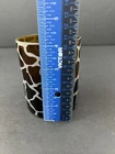 This set of four cocktail glasses from Pier 1 features a unique and stylish giraffe print pattern etched onto the amber glass. Perfect for any occasion, these glasses add a touch of sophistication to any barware collection. Made of high-quality glass, they are both durable and beautiful. With a service for four, they are great for entertaining guests or enjoying a drink with friends. The brand Pier 1 is known for its quality and style, and these glasses are no exception. The brown color and animal print theme of these glasses make them a great addition to any home decor. The etched design adds a nice touch of elegance, while the glass material ensures that they are easy to clean and maintain. Ideal for adults, these cocktail glasses are perfect for any occasion, whether it's a formal dinner party or a casual get-together.