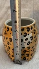 The Pier 1 Imports Leopard Print Cat Cookie Jar Canister Stoneware is a stylish and whimsical addition to any kitchen. With a twist off lid and one compartment, this multicolor stoneware container features a leopard print pattern and a cute cat design. Perfect for teens and adults alike, this original Pier 1 Imports product adds a touch of animal theme to your kitchen storage and organization system. Made in China, this cookie jar canister is a unique and practical item for those who love quirky kitchen decor.