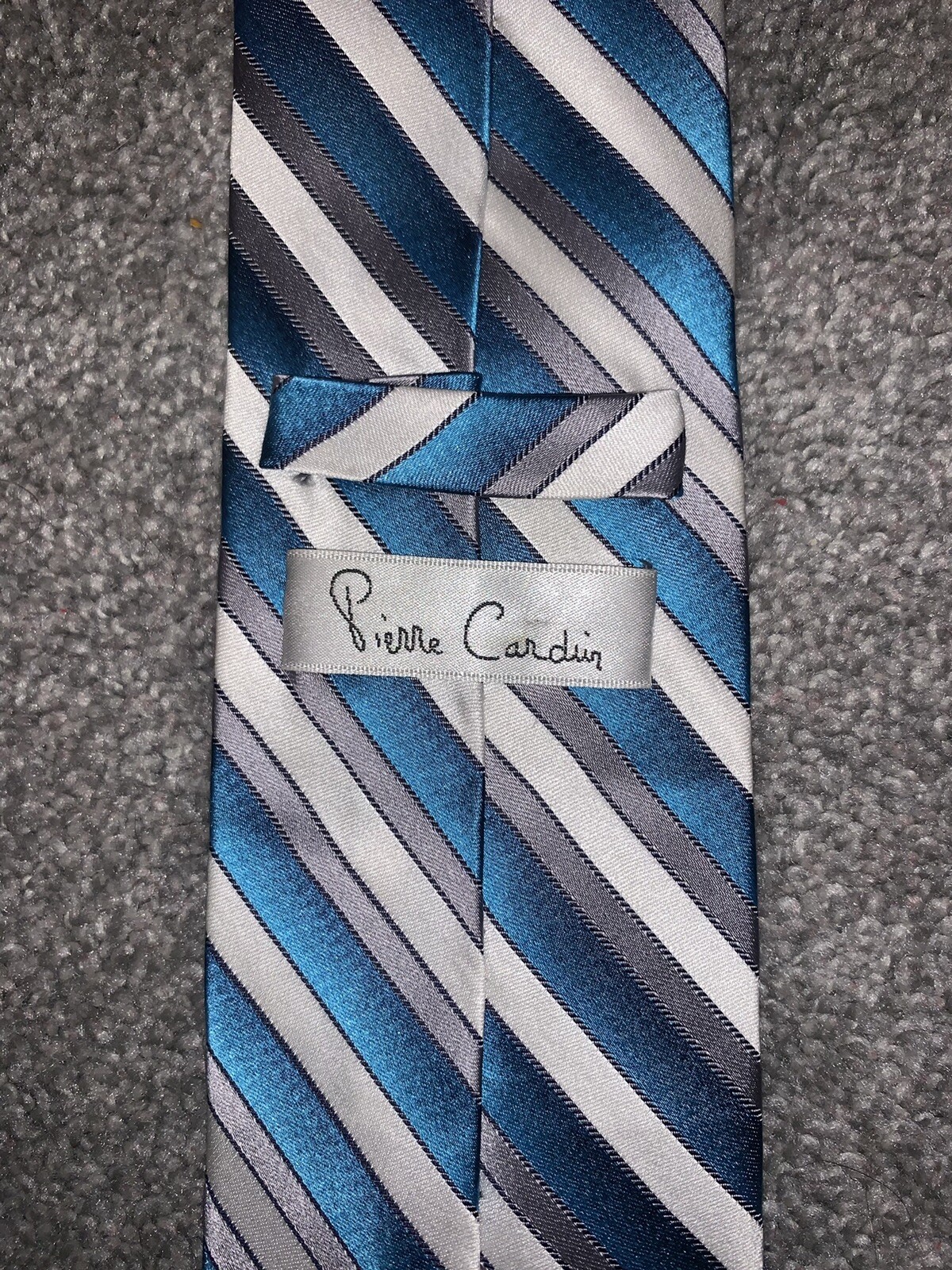 Pierre Cardin Necktie Tie Multi-Color Blue Silver Striped 60.5”. Tie in excellent condition