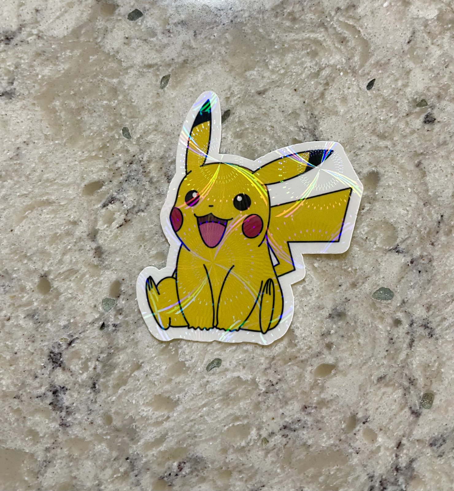 High quality waterproof Pikachu Pokemon sticker perfect for Pokemon lovers! These are very durable long lasting die cut stickers meaning they are versatile. They can go on laptops, phones, tablets, notebooks, tumblers, mugs, binders, and more! Available in gloss or holographic laminate and in small, medium, or large. Small - 1.3" x 1.5" Medium - 2.1" x 2.4" Large - 3.3" x 3.4" Sticker Care Instructions - Make sure to clean surface before placing sticker - Hand wash only, not dishwasher safe - Apply only to smooth surfaces - 1-3 day processing time - Shipping time is usually 1-5 days but varies due to USPS services and shipping procedures - Returns are accepted within 30 days