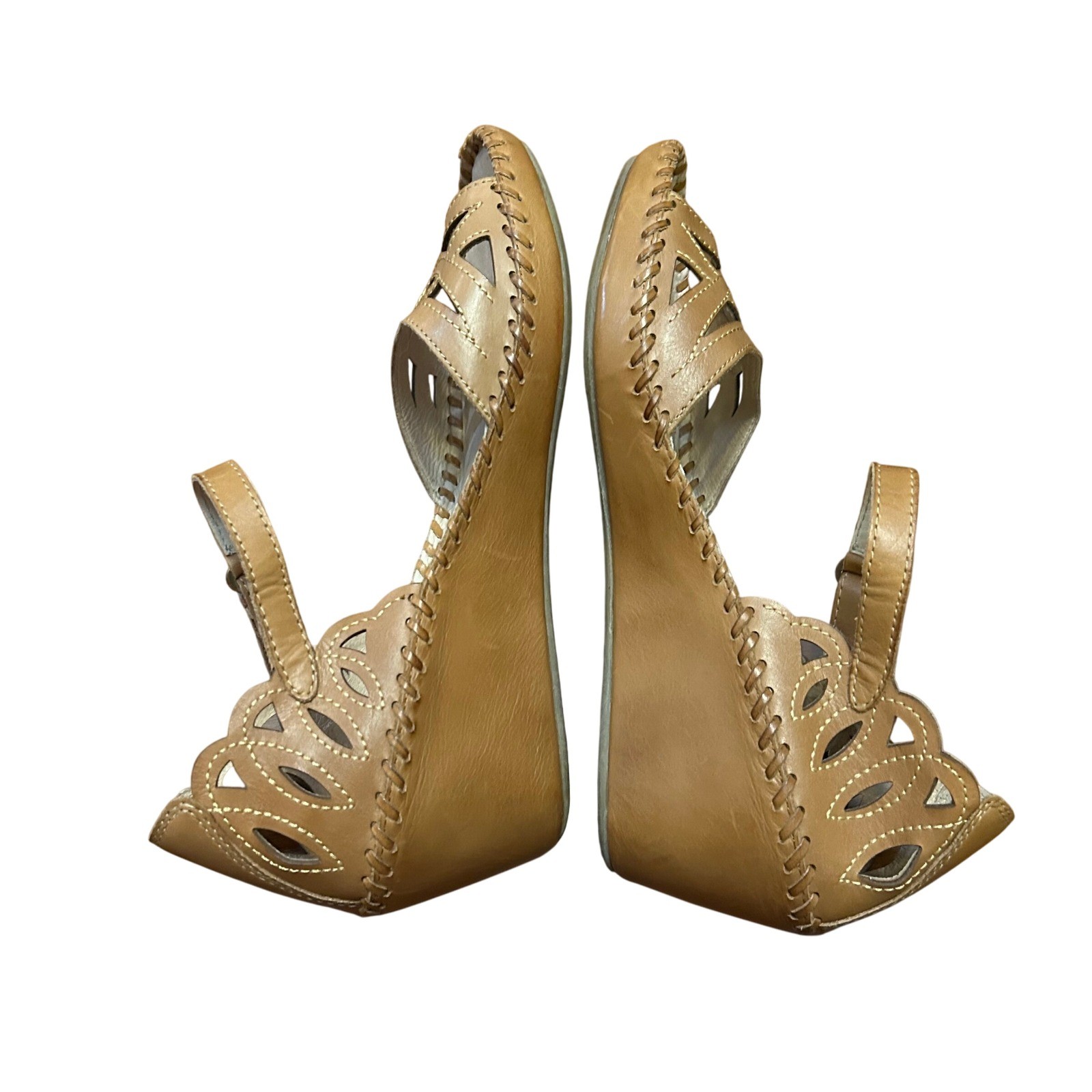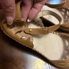 Sun-kissed style awaits with these Pikolinos wedge sandals, a delightful fusion of comfort and chic design! Imagine yourself strolling along sun-drenched cobblestone streets, the supple leather embracing your feet with every step. The artful cutout details add a touch of whimsy and breathability, while the adjustable ankle strap ensures a secure, custom fit. This shoe's wedge offers a gentle lift, providing both style and support for all-day wear. It has decorative stitching. These sandals are destined to be your go-to choice for everything from weekend brunches to summer garden parties and casual Fridays at the office. Style: Strappy Color: Brown Department: Women Upper Material: Leather Heel Style: Wedge EU Shoe Size: 39 Features: Ankle Strap, Adjustable Strap, Comfort, Breathable, Cutout Closure: Buckle Pattern: Solid Accents: Cutout, Stitched Character: Comfort, Bohemian, Casual, Summer, Garden Party Type: Sandal Keywords: Pikolinos, wedge sandals, leather sandals, cutout sandals, ankle strap sandals, comfort sandals, casual sandals, tan sandals, brown sandals, summer shoes, women's sandals, designer sandals, bohemian sandals, stylish sandals, leather wedge