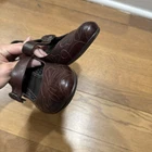 $ 50.16Gianni Bini Brown Leather Clogs 8.5M with Two Inch Heel and Western Square Toe