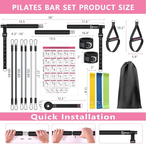 30 Days Return Policy Fast Delivery Trusted seller Pilates Bar Kit with Resistance Bands,Pilates Bar with Stackable Bands Workout Equipment for Legs,Hip,Waist and Arm,Exercise Fitness Equipment for Women & Men Home Gym Yoga Pilates Product Description 【2024 Newest Pilates Bar Kit 】Pilates Bar Kit with Resistance Bands composed of three screw steel pipes,Six resistance bands (20/30/50lbs) equipped are made of natural latex, and three kinds of resistance can be freely matched with different intensities to 20-200 LBS.It can help you improve your strength, flexibility, and balance. which is strong, durable, and non-slip. 【Upgraded Adjustment Pilates bar 】Our Pilates bar come with newly upgraded adjustment buckle and nylon rope with clear graduations. Just press the button easily, you can adjust the nylon rope to the desired length more quickly and accurately when training different movements. The adjustable ranges from 4.3 inches to 18 inches. Our Pilates bar kit with resistance bands are suitable for those who are between 5.2” - 5.8” height to practice. 【Multiple Pilates Equipment】 2-in-1 multi-function handle has soft padding to prevent chafing against the skin, Wear-resistant D-buckles on the handles make it easy to change any resistance bands. Door anchor is very useful when you have a lockable, sturdy door. It can be connected with multi-functional handles and resistance bands for exercising arms and back. It can also be combined with ankle straps to exercise your legs.Use Them For General Exercise, Stretching Training. 【Easy to Installation & Portable】Portable pilates bar workout women equipment at home pilates equipment with 3 circle threaded, It can be assembled with 2 sections or 3 sections,ten seconds to complete the connection and disassembly of the stick,The included portable bag allows you to easily store all the accessories of the multifunctional Pilates bar kit , space-saving,and easy to carry. 【Multifunctional Pilates resistance bands】Upgraded Pilates bar kit with resistance bands Extra three Resistance Band Set Can Be Integrated Seamlessly With Various Popular Workout Program. As long as you use it to do different movements, you can shape and maintain a perfect figure. Door anchor, handles, ankle straps and three high-quality resistance bands enrich your exercise methods. 【Full Body Workout】 Whether you are beginner or profession, you can use our pilates kit for yoga, Can be combined into 20lbs to 200lbs used for yoga, Pilates, stretching, fitness and other training programs, exercising your arms, legs, buttocks, waist, neck and back.We want to satisfy you to the fullest with our yoga Pilates bar and professional customer service.if any question,please be free to contact us and we'll regularly reply to you within 12-24hours. Shipping Returns Payment Shipping Shipping is FREE to all addresses other than APO/PO boxes in the lower 48 states. All our stock ships from US-based warehouses. Shipped via USPS or UPS (depending on location and package weight) Unless stated otherwise, all orders will ship within 24-72 hours of your payment being processed. Check our feedback to see the great reviews of FAST shipping we offer. Returns As our valued customer, we will do our best to make sure the product you receive arrives to you on time and as expected. If you are not satisfied with your purchase, please contact us within 30 days of receiving your order to process a return. Payment We currently accept payment via eBay managed payments only. Once payment is cleared, we will dispatch your shipment within 1-3 business days. Please refer to the "Shipping" tab for more information regarding shipping speed to your destination.