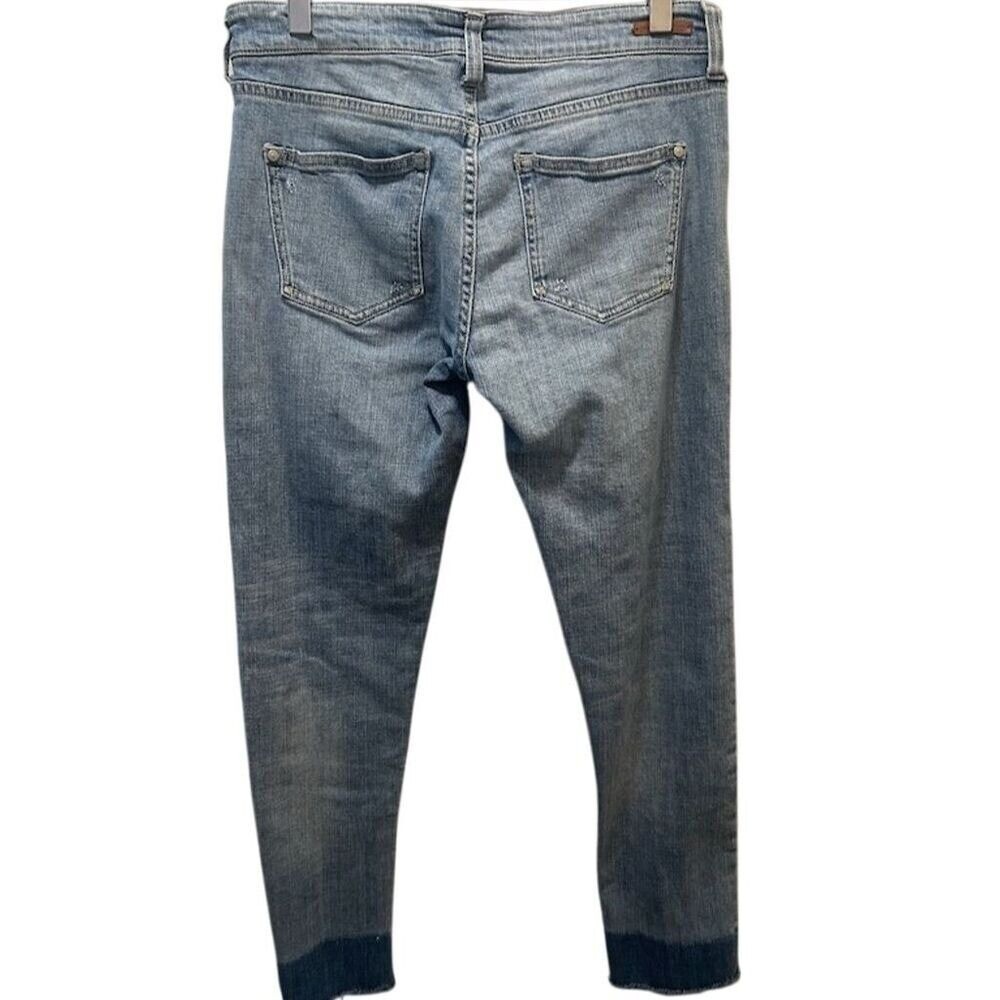 Pilcro Anthropologie light wash denim jeans with a frayed raw hem. These stylish jeans feature a modern distressed look with subtle rips on the legs. Perfect for casual outings, weekend adventures, or pairing with your favorite tops for a chic, relaxed vibe. Measurements: • Waist: 13 in Style: Ankle Department: Women Fabric Wash: Light Waist Size: 26 in Type: Jeans Accents: Fringe, Zipper Features: Distressed, Stretch, Pockets, Comfort Fit: Slim Pattern: Solid Rise: Mid (8.5-10.5 in) Fabric Type: Denim Inseam: 27 in Material: Cotton Blend, Spandex Closure: Button, Zip Theme: Bohemian Keywords: Anthropologie, distressed denim, frayed hem, light wash, cropped jeans, casual wear, street style, denim, fashionable, trendy, weekend style, everyday wear All items come from a smoke free, pet friendly home. All of items unless NWT or Dry Clean Only are washed with Tide. We try our best to disclose any flaws with items, if we miss something please reach out and let us know. We offer combined shipping on all our items. We do take measurements of our clothing listed for sale. Please compare the measurements to something you already own.