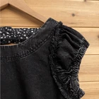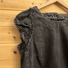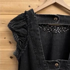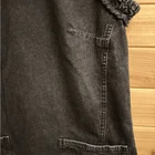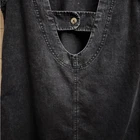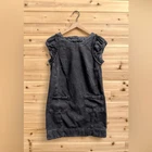 Faded Black Dark Gray Cotton Denim Utility Ruffle Sleeve Mini Dress With Buttoned Straps On Open Back Materials: 100% Cotton Style: OB1534568 Measurements In Inches: Pit To Pit: 17 Length: 32