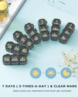 7 Day Pill Organizer 3 Times A Day - Your Health Steward! Remembering to take different medications every day can be tricky and troublesome. So relying on a pill organizer is an effective way to manage your medication intake and make sure you’re right on schedule. our pill box organizer 7 days three times a day provides you with such an easy and effective way to keep track and maintain your medication regimen! 7 Day Pill Box 3 Times A Day Feature: ✔ Store 7 Days' Meds - Save your time by filling and dispensing one week's pills at once, rather than manually sorting them every day. ✔ Secure Latch Design - This medicine organizer 3x a day has double snap-shut lids that never pop open in your bag and protects pills. ✔ 7 Detachable Vitamin Pill Box - 7 detachable individual pill cases are labeled on different days. If you're out, you can just take the specific day you need instead of a whole one. ✔ Safe BPA-Free Material - This pill container 7 day 3 times a day is made of eco-friendly food-grade material, safe for medical use. ✔ Enough Capacity - The weekly pill holder with 21 compartments fits different sizes of pills, fish oils, vitamins, and so on. -For Whom to Use? - Individuals with memory loss - Elderly people, pregnant women - When under multiple medications - To ensure, a patient has taken or not taken medicine Warning: As with all medication storage devices, please keep the vitamin organizer away from children and pets. Specifications: Weight: 230 g/0.51 lb Item Dimensions: 9.1*4*1.2inch(Large) 3.2*1.2*1.1inch(Small) Material: BPA-free food grade plastic + Silicone Package Included: 1 x Vitamin case organizer 7 day 3 times a day Note: The buckle of the pill box three times a day opens from the top to down. Store 7 Days' Meds ( 3 Times A Day ) & Easy to Track: This noble pill organizer 3 times a day helps you plan and dispense a week's medications in advance, help you from the daily repetitive action of manually organizing your pills and saving time. Clear colored week icons and morn, noon, and evening letters remind you to take the right dose at the right time, easily tracking and maintaining your 3 times a day medicine regimen. 7 days pill organizer - Your smart health assistant Detachable Daily Pill Container & Ideal Pill Organizer For Travel: This luxury weekly pill box 3 times a day contains 7 detachable medicine organizers conveniently labeled for storing your daily (morn, noon, eve) medications. For daily outings or short trips, you can detach exactly the days you need instead of carrying a whole 7-day pill dispenser, greatly reducing the burden of luggage. It is a great solution for anyone who wants to keep organized and on track with daily medication schedule Double Protection For Your Medicine: The whole vitamin box organizer 3 times a day and each daily pill planner has reliable snap-shut lids that never pop open in your bag and protect your pills. No need to worry about opening the lid due to unintentional touching by pets and children, the pill keeper stays closed once it is locked. And unique moisture-proof silicone rings keep the pills away from moisture and ensure dry storage. Note: The buckle of the pill storage opens from top to down Enough Capacity & Luxurious Visual Aesthetics: This pill container 3 times a day weekly has enough capacity to fit and dispense all your different sizes of pills for one week, and each slot can hold up to 4 fish oils or 5 large vitamins for daily uses. Besides, this 7 day pill holder has an elegant, modern, and noble appearance, bringing you the ultimate visual enjoyment. If you have an elderly relative or friend who takes medications or multivitamins, this would be a great choice for them Pill Organizer 3 Times A Day: Are you exhausted from using conventional pill organizers to handle your medication? Or do you have concerns about forgetting your pills while away from home? The pill organizer 3 times a day offers a solution! Fill it once a week and enjoy the convenience of this reliable tool that helps you stay on your medication schedule effectively and effortlessly