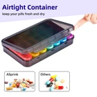 [Large Capacity Rainbow Pill Box] The weekly pill box organizer has 7 separate daily pills organizer for a week, total 21 large compartments. Each slot can store 10 fish oils and at least 80 small tablets. Plenty of rooms for all of your meds and keeping yourself organized. [Excellent Printing] Each day of the week has compartments for "MORN" "NOON" "NIGHT" on its top.The pill box 3 times a day weekly pill organizer, is printed by updated "3D" printing technology. And by testing, this pill box 7 day medication organizer's icons will never rub off for over 6,000 times of use. So, the weekly pill organizer vitamin container can keep track of your medications and stay on schedule. [BPA Free Materia] daily travel pill box organizer is made of premium food grade plastic.Our pill organizer large medication dispenser can ensure your body healthy.Besides, the daily color coordinator is eye-catching enough to be seen, helping you to distinguish letters at a glance. Beautiful pill box organizer 3 times a day! [Super Easy To Use]This pill organizer weekly medicine organizer pill box, is easy to open and close with your right thumb.And this medicine organizer box pill container, features a snap shut lid, locking pills tightly. So easy and so efficient! [Perfect for Carrying]The size of each independent travel small pill box is only 4.7in(L) x 1.2in (W) x 1.1in (H). And this large pill organizer daily can hold quite a bit of pills for each slot, but this pill cases organizers 7 day, is small enough to stash even in your pocket or purse. Hurry up to take it for travel!