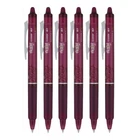 Work on writing projects using these fine-point pens. Featuring thermosensitive gel ink, these pens make it easy to edit essays, schedules and other papers without causing any damage to documents. These Pilot FriXion Ball Clicker erasable black gel pens have 0.7mm fine-point tips, making them ideal for working on charts, illustrations and other detailed tasks. Always correct your mistakes with the Pilot FriXion Gel Pen. The patented erasable ink formula writes clear and crisp lines while erasing completely, forgiving every error. These black gel pens feature a soft grip for comfortable writing, while the ample size, refill-capability and retract function make them an all-in-one quick writing solution. Erasable gel pens allow you to write, erase, and rewrite with no wear-and-tear Fine 0.7mm tip ensures crisp lines with every use Comfort grip for superior control Features a pocket clip for convenient carrying Refillable ink allows pens to be reused instead of replaced to save money Includes 6 burgundy pens with burgundy ink