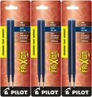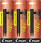 Pilot's high quality refills and accessories extend the life of Pilot products, creating ultimate value; an economic and environmentally-friendly option. Point Type: Fine 0.7mm Wrote smoothly and erased cleanly Smooth, mistake-free writing benefits teachers, students, parents, and professionals alike. Each pack includes 2 refills. Sold as set of 3 Packs. Refill fits the following pens: FriXion Ball, FriXion Clicker and FriXion LX About FriXion Erasable Pens by Pilot FriXion offers more than a pencil ever could! Unlimited do-overs allow you to write, erase, and rewrite repeatedly without damaging your documents. The eraser tip won't wear down or leave crumbs behind. No one will know it wasn't perfect the first time! FriXion Erasable Pens are available in a variety of colorful inks and point sizes that are great for making lists and staying organized.