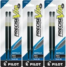 Pilot's high quality refills and accessories extend the life of Pilot products, creating ultimate value; an economic and environmentally-friendly option. Point Type: Bold 1.0mm Smooth and skip-free writing Delivers precise and clean lines 2 colors available for fine point Each pack includes 2 refills. Sold as set of 3 Packs. Refill fits the following pens: Precise V10 RT retractable . About Precise V5/V7/V10 RT Pens There is a fine line between good and great and that line is drawn with Pilot Precise. Precise rolling ball retractable pens are designed to deliver the same kind of premium, precision writing experience as the capped version. Precise combines Pilot's exceptionally smooth writing ink, premium metal accents, and comfortable grip for a go anywhere sophisticated writing experience. Precise is ideal for those who prefer retractable pens and demand superior writing performance. Precision tip delivers a precise, clean line every time Retractable convenience with sophisticated metal clip Patented Precision Point Technology for smooth, skip-free writing Rubber grip with traction pockets Airplane safe system Refillable