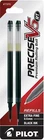 Pilot's high quality refills and accessories extend the life of Pilot products, creating ultimate value; an economic and environmentally-friendly option. Point Type: Extra Fine 0.5mm Smooth and skip-free writing Delivers precise and clean lines 3 colors available for extra fine point Each pack includes 2 refills. Sold as set of 3 Packs. Refill fits the following pens: Precise V5 RT retractable . About Precise V5/V7/V10 RT Pens There is a fine line between good and great and that line is drawn with Pilot Precise. Precise rolling ball retractable pens are designed to deliver the same kind of premium, precision writing experience as the capped version. Precise combines Pilot's exceptionally smooth writing ink, premium metal accents, and comfortable grip for a go anywhere sophisticated writing experience. Precise is ideal for those who prefer retractable pens and demand superior writing performance. Precision tip delivers a precise, clean line every time Retractable convenience with sophisticated metal clip Patented Precision Point Technology for smooth, skip-free writing Rubber grip with traction pockets Airplane safe system Refillable