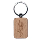 Pin-Up Space Woman Science Fiction Engraved Wood Rectangle Keychain Tag Charm
