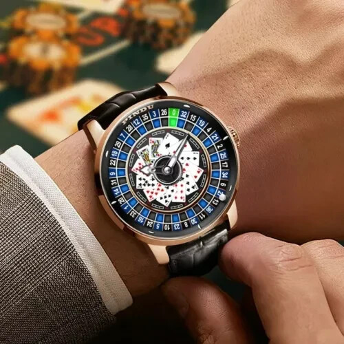 Step into the world of unique craftsmanship and style with the Pindu Design NH35 Poker Mechanical Watch . This striking timepiece combines modern ingenuity with a daring poker-themed design, making it a must-have for watch collectors and enthusiasts alike. Key Features: 🎰 Rotating Dial with Roulette Wheel Design : The standout poker and roulette-inspired dial adds a touch of Vegas glamour to your wrist, perfect for those who love to take risks and make bold moves. ⚙️ NH35 Automatic Movement : Powered by the reliable NH35 mechanical movement, this watch ensures precision and durability without the need for batteries. 💎 Premium Build : Crafted with high-quality materials, the case and strap are designed for long-lasting wear while offering a luxurious feel. 🌊 Water-Resistant : Engineered to handle daily life, this watch is water-resistant, ensuring it’s ready for your adventures. ⌚ Unique Poker Aesthetic : With its poker card details and vibrant roulette motif, this timepiece is more than just a watch – it’s a conversation starter. Specifications: Movement : NH35 Automatic (Self-winding) Dial : Poker-themed rotating roulette wheel Case Material : Stainless steel for durability Strap : Comfortable, adjustable fit Water Resistance : Daily water-resistance (not suitable for swimming or diving) Why Choose the Pindu Design NH35? Whether you're a poker enthusiast, a fan of innovative watch designs, or someone who loves to stand out, this watch is the perfect addition to your collection. Its unique design and dependable movement make it a versatile accessory that’s as functional as it is stylish. Order yours today and let the Pindu Design NH35 Poker Mechanical Watch be your ace up the sleeve! Fast shipping. Secure your unique timepiece now before it’s gone!