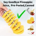 Pineapple Corer and Slicer Tool (2 PCS) - Slices, cores and cuts pineapple simultaneously, which greatly improves the efficiency and makes the processing of pineapple pulp will never be a chore.Simple operation method - Stop watching pineapples wasted in your kitchen because of the monotonous and time-consuming work of cutting pineapples.How to use Pineapple Corer Set? (You can find more details in the video on the details page.)1. Cut off the top of the pineapple;2. Place the coring device vertically with the pineapple to estimate the height of the coring pulp;3. Put the cutter into the corer, and then assemble the handle;4. Align the pineapple corer to the center and rotate clockwise to pre-compared scale;5. Grab the pineapple shell and take out the pulp of the pineapple;6. Push the cutter to the bottom and enjoy it;Why choose Pineapple Corer Slicer Cutter?- Easy to clean & durable: Thickened blades and high-quality material, we do our best to control the quality of products;- Reduce confusion, easy to use: Simple operation method, instant enjoyment of food;- Suitable for most pineapples: 1.3 inches (3.2 cm) core diameter, 3.3 inches (8.3 cm) pulp ring diameter;- Essential dessert and fruit processing tools for summer parties, unique and eye-catching;- Ideal for housewarming, Christmas, Thanksgiving and other holiday presents; Made of good grade stainless steel and ABS. Safer and more assured. Easy to use, easy to clean and will last long. Measure marks - Convenient to estimate the depth of core removal, prevent the bottom of pineapple from piercing, and keep the whole pineapple shell. The whole pineapple shell can be used to make pineapple rice or drink. Thickened and sharp blade - Quickly slice, core and cut fresh pineapple, saving you more than half of the time! Equipped with stainless steel cutter to cut pulp into pieces, enjoy the delicious bite-sized with your family and friends! Ergonomically comfortable handle - Allows effortless twisting or pushing cores through the pineapple, etc. Pineapple Corer and Slicer Tool assembly and disassembly are easy to operate. Safer and more convenient to use - Say goodbye to knives, cutting boards and the chaos of slippery pineapples. The whole pineapple shell can be used as a container or garnish for your Hawaiian themed party, which is very creative.
