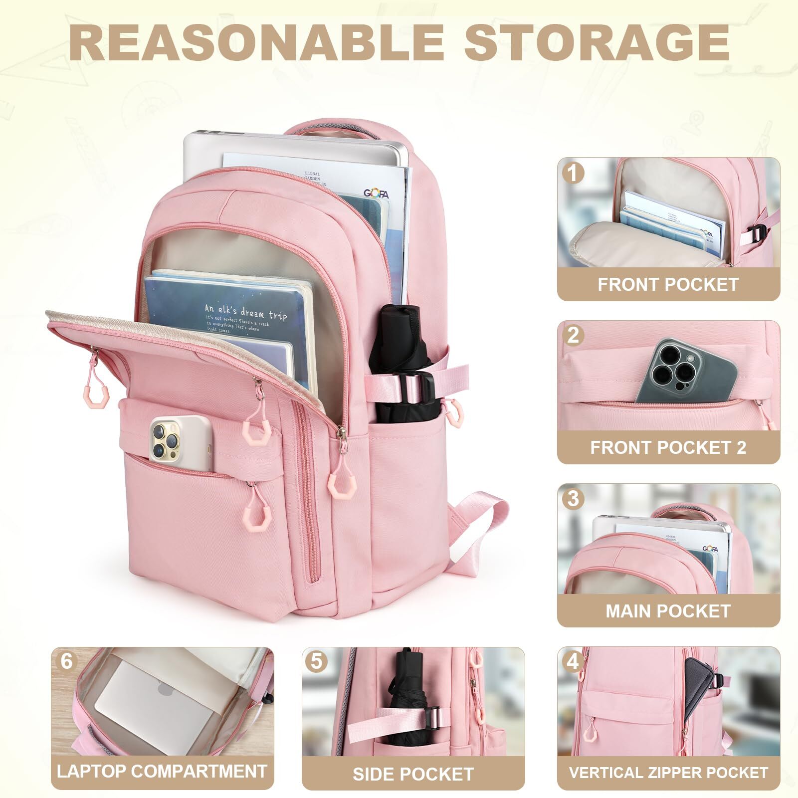 This pink backpack is a dream for college students! It’s super lightweight yet surprisingly spacious, with plenty of pockets to keep everything organized. My 16" laptop fits perfectly in the padded compartment, and the double zipper adds extra security. The side pockets are great for water bottles, and the sleek light pink color is so cute. Carrying it around campus is a breeze—super comfy straps and barely feels like I’m wearing it. Perfect for class, travel, or everyday use!