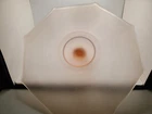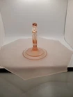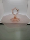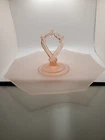 This vintage pink Depression Glass tray is an octagon-shaped sandwich plate with a frosted finish. It includes a handle for easy serving and is unmarked. Made of glass in the mid-20th century in the United States, this stylish serving platter is perfect for all occasions.