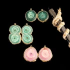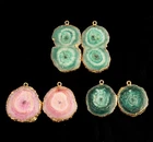 Pink Green Solar Quartz Yellow Gold Electroplated DIY 3 Pair Connectors Jewelry