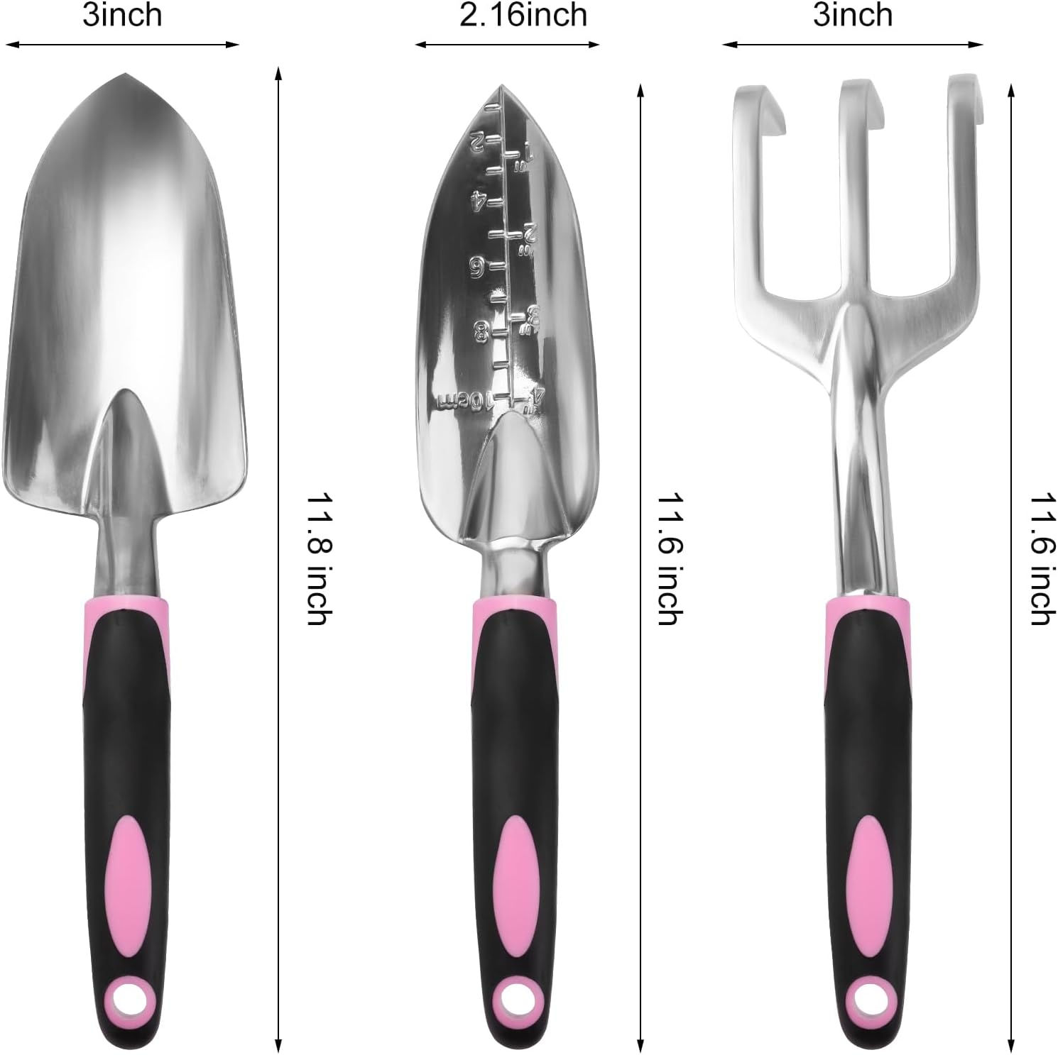 Store New Arrivals Add to Favorite View Feedback Contact Pink Garden Tool Set, 3 Pack Aluminum Heavy Duty Gardening Kit Includes Hand Trowel, Transplant Trowel and Cultivator Hand Rake with Ergonomic Non-Slip Rubber Handle, Garden Gifts Description Item model number JV-GTS-3PC-PNK-A Item dimensions L x W x H 12.4 x 3.2 x 2.5 inches Color 3 Pack Garden Tool Set Pink Product Dimensions 12.4 x 3.2 x 2.5 inches Material Aluminum and Rubber Country of Origin China Item Weight 0.5 Kilograms Handle Material Rubber Recommended Uses For Product Digging, Weeding, Loosening Soil, Aerating, Transplanting, Raking, Cultivating Special Feature Ergonomic Brand Jvoiyae Manufacturer Jvoiyae 🌹【Garden Tool Set】: Including hand trowel, transplant trowel and cultivator hand rake, made of high quality aluminum alloy with great polished. Perfect for a variety of garden tasks including digging, weeding, loosening soil, aerating, transplanting and more. 🌹【Ergonomic Design】: The handle is made of high quality TPR rubber, comfortable and non-slip. The ergonomic rubber grip with contoured finger grips and palm rest, reduce hand and wrist fatigue while weeding, and features a hang hole for convenient storage. 🌹【Hand Trowel】: Wide head can quickly shovel more soil, and the trowel tip is smooth but not too sharp, without damaging the roots. Ideal for digging, tilling the soil, planting, transplanting plants or flowers. 🌹【Transplant Trowel】: With two standard scales: Inches and centimeters. It' s clear and easy to read and won' t be worn. Ideal for removing dirt and measuring when you want to get the right depth for the plant, and transplanting small plants and flowers. 🌹【Cultivator Hand Rake】: With 3-claws design and sturdy structure, ideal for breaking up soil, clean up waste,remove weeds and mix soil with fertilizer. 🌹🎁【Perfect Gift】: Pink gardening tools included in beautiful paper material packaging box, durable top-quality and good looking, which is a perfect gift for birthdays, anniversaries, farewells, best wishes, Thanksgiving, Christmas, New Year or as a gift for yourself and gardening lover. Product Description Jvoiyae 3 PCS Pink Garden Tool Set Enjoy your gardening with our pink garden tool set! They are only essential garden tool set, but also beautiful gardening hand tools to give you happiness in the garden. Enjoy your gardening time to grow vegetables, plants, flowers, spices and whatever you like. Essential garden tool set Hand Trowel - Ideal for shoveling dirt, planting, transplanting, tilling the soil, digging and more. Transplants Trowel - Ideal for removing dirt, digging, measuring right depth, and transplanting small plants and flowers. Cultivator Hand Rake - Ideal for digging, loosening soil, cleaning up waste, removing weeds or mixing soil with fertilizer. Made of heavy duty aluminum alloy, high hardness, durable sturdy and do not bent. Easy to clean, rust-resistant and always great-looking. The Transplants Trowel with clear tick marks, easy to read inch and centimeter marks assure seeds, bulbs & small plants are set to the correct depth. Made of high quality rubber, comfortable and non-slip, reduce hand and wrist fatigue while weeding. Fun for Entire Family This tool set let gardening as a leisurely and fun activity for the entire family. ABOUT US We offer the best prices around on high quality products. Our E-store includes media such as books, movies, music and games while offering electronics, toys, sporting apparel, clothing, tools, general home, garden items and more. SHIPPING We are always working hard to ensure your package arrives as soon as possible. Please understand that some factors like weather, high postal traffic, and the performance of shipping companies are outside of our control. We offer free shipping to the lower 48 states and ship within 2 business days of payment, usually sooner. We do not accept P.O. Boxes. Please provide a physical address. RETURNS We offer a 30-Day Return Policy on items which you are not completely satisfied with. You have the option for a full-refund or an exchange of the item. No returns are available on items shipped outside of the USA. PAYMENT We accept PayPal. CONTACT US This page content is yet to come Please ad us to your favorite seller and visit again later Thank You CUSTOMER SATISFACTION We try our very best to make sure every customer is completely satisfied. If there's a problem, message us! We're happy to help.