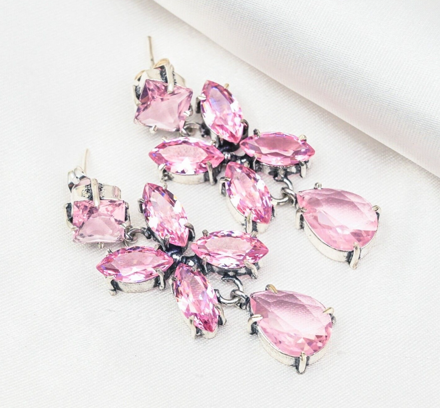 Pink Kunzite Earrings Gemstone Handmade 925 Sterling Silver Amazing Fine Jewelry