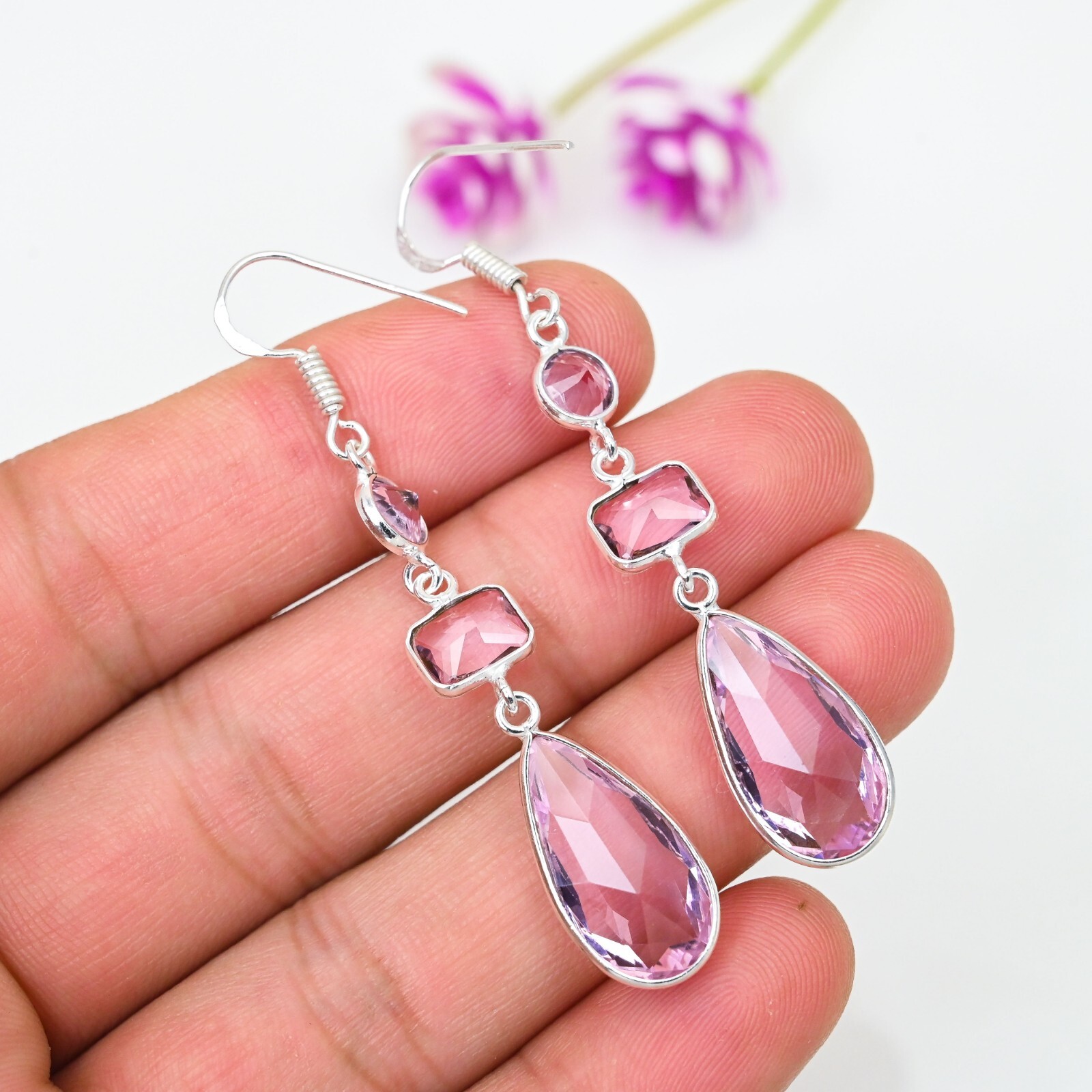$ 15.432 Ct Round Moissanite Teardrop Earrings in 14k White Gold