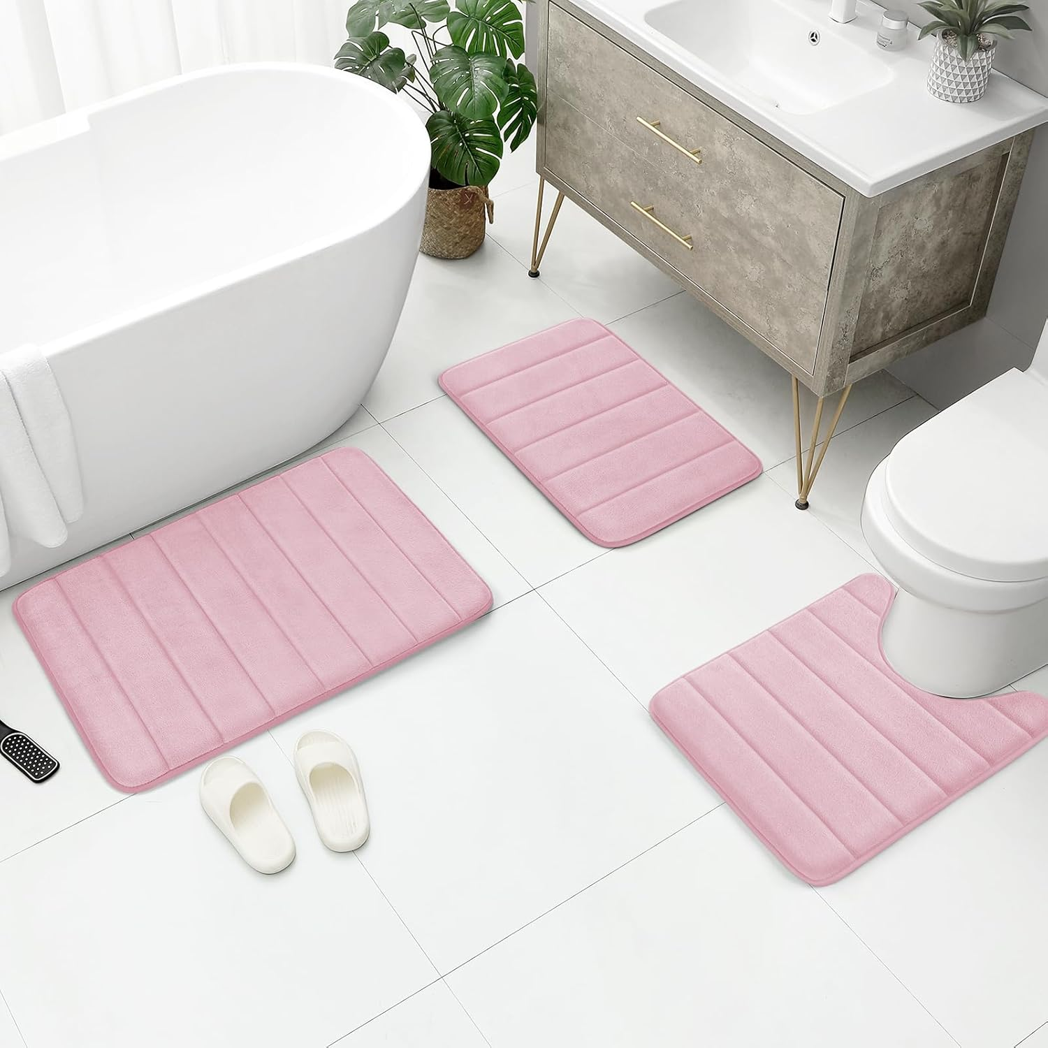 Store New Arrivals Add to Favorite View Feedback Contact Pink Memory Foam Bathroom Rug Set 3 Piece, Non Slip Extra Soft Absorbent Machine Washable Toilet Bath Toilet Mat (17"X24"+20"X32"+U Shape 20"X24") Description Weave Type Machine Made Color Pink-stripe Material Memory Foam Item Weight 0.93 Kilograms Size 1'5" x 2'8" (Rectangular, U-shaped) Complete Bathroom Rug Set: Includes 32" x 20" and 24" x 17" bath mats, plus a 24" x 20" U-shaped toilet contour rug, good for any bathroom setup Premium Quality and Comfort: Made with natural microfiber fabric, smooth and nice feeling like step on soft sea sand, great 40D standard memory foam pad that helps soothe achy muscles, giving you high level support that other bath rugs can't provide. Non-Slip and Water Absorption: BYSURE memory foam bath rug set owns anti-slip backing Design, friendly for your family and pets. The bath mat set has a stronger grip underneath, the latest texture design covers all edges to keep the mat firmly in place, anti-slip while step on it. Intensive small holes on thicker memory foam help return the rugs, also drive the airflow through the surface, absorb water quickly, and diffuse faster. Machine Washable: Simply wash with cold water and mild detergent, then hang dry. Colors remain vibrant even after many washes Variety of Colors and Textures: Available in multiple colors and textures to match your home decor. Choose your favorite to enhance your space! ABOUT US We offer the best prices around on high quality products. Our E-store includes media such as books, movies, music and games while offering electronics, toys, sporting apparel, clothing, tools, general home, garden items and more. SHIPPING We are always working hard to ensure your package arrives as soon as possible. Please understand that some factors like weather, high postal traffic, and the performance of shipping companies are outside of our control. We offer free shipping to the lower 48 states and ship within 2 business days of payment, usually sooner. We do not accept P.O. Boxes. Please provide a physical address. For shipping outside of the continental USA, we only use eBay's Global Shipping Program.The item is shipped to KY and then sent to the rest of the world. International customers are responsible for all duties and taxes. Continue to check out in order to calculate costs for shipping the item to your country. Messages regarding eBay's Global Shipping Program MUST be directed at eBay EXCLUSIVELY. RETURNS We offer a 30-Day Return Policy on items which you are not completely satisfied with. You have the option for a full-refund or an exchange of the item. No returns are available on items shipped outside of the USA. PAYMENT We accept PayPal. CONTACT US This page content is yet to come Please ad us to your favorite seller and visit again later Thank You CUSTOMER SATISFACTION We try our very best to make sure every customer is completely satisfied. If there's a problem, message us! We're happy to help. WE ACCEPT Copyright © 2021 AutoDS. | All Rights Reserved