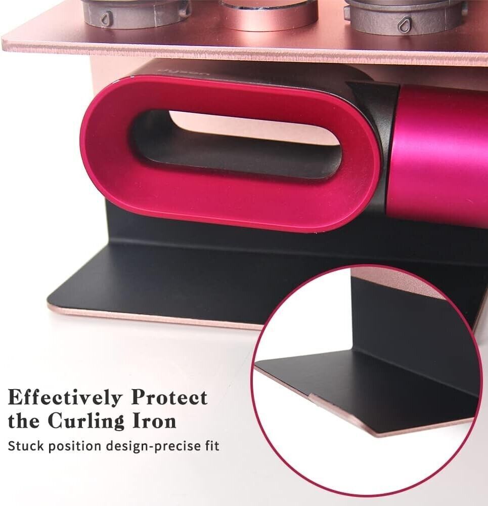 This wall-mounted organizer is a game-changer for Dyson Airwrap owners! It keeps all my accessories neatly in place, saving counter space while looking chic in pink. The non-slip mat protects my styler from scratches, and the sturdy metal design holds everything securely. Installation was simple, and now my bathroom looks so much more organized with everything within easy reach. Love how it keeps my expensive tools safe and accessible!