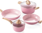 Enjoy a tasty and safe cooking experience with the Vkoocy Series Set! This 6-piece cookware set includes a 9.5" frying pan, 11" frying pan, 1.5-quart sauce pan with Lid, 5-quart stockpot with Lid. Made with non-toxic ceramic and free of harmful chemicals, this set contains all the tools you need to fry, sear, roast, and simmer your favorite dishes without worry. Plus, It's also specially decorated with patterns to make your kitchen blend with nature; Healthier & Safe Cooking: The set features a ceramic nonstick coating made without PFAS, PFOA, PFOS & PTFE that allows for effortless food release and an even easier clean up. High magnetic conductive stainless steel base allows our non stick kitchen cookware to work on all cooktops, like Electric, Halogen, Ceramic, Gas, Induction, Glass and Oven. The Extended and Thicken Bottom Design also makes the cookware durable and heats up quickly and evenly; Easy To Clean: Rivetless interior to prevent snags and food buildup. Just wipe it with a paper towel or rinse it with water, The pot body is also suitable for dishwashers (recommended without handle cleaning); Your dinner table serveware centerpiece. Modern, glossy, strong and an excellent heat retainer, our ceramic cookware is made to be involved in every part of the meal from prepping to laughing around the breakfast, lunch and dinner table; By our family for your health. At Vkoocy, our products are our integrity. That's our promise to you ??? we'll make decisions with your family and your health in mind as we would our own. If you encounter any problems, please feel free to contact us and we will solve them perfectly for you.
