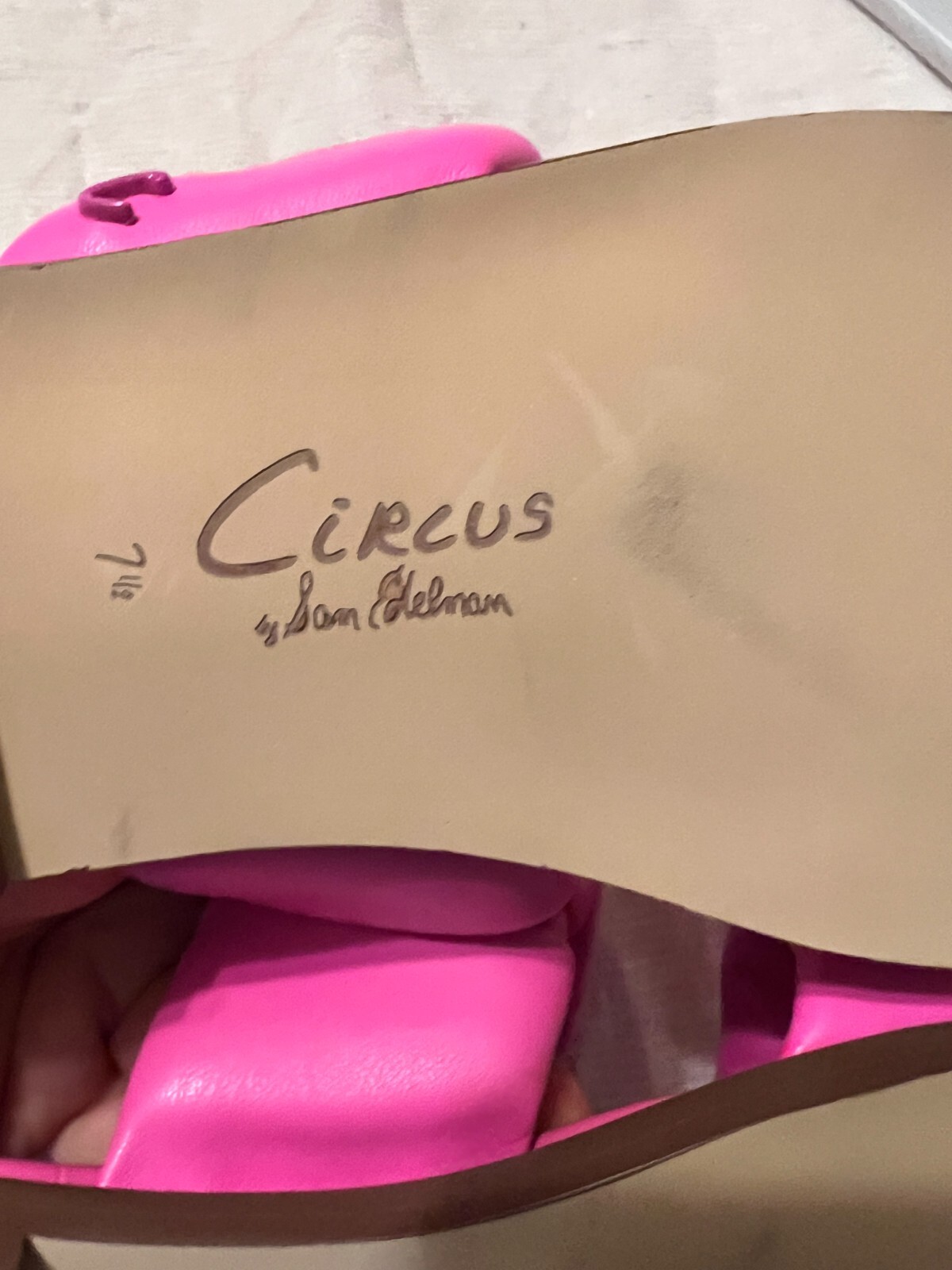 The Pink Punch Boutique Circus Inara Sandal by Sam Edelman is a stylish flat sandal in a vibrant pink color, perfect for women who wear a size 7 shoe. This sandal features a flat heel style and belongs to the SAM EDELMAN CIRCUS collection, offering comfort and style for everyday wear.