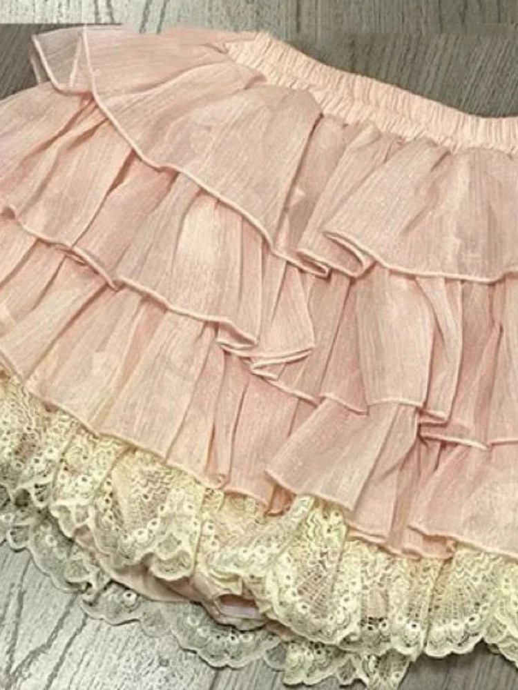 $ 17.95Streetwear Y2k Ruffles Mini Skirts Women Sweet Kawaii High Waist Lace A Line Ski
