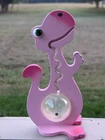 dinosaur-shaped bank. Stands on the floor. This is probably the coolest piggy bank! You put the coin in its mouth and watch It go down in her belly.