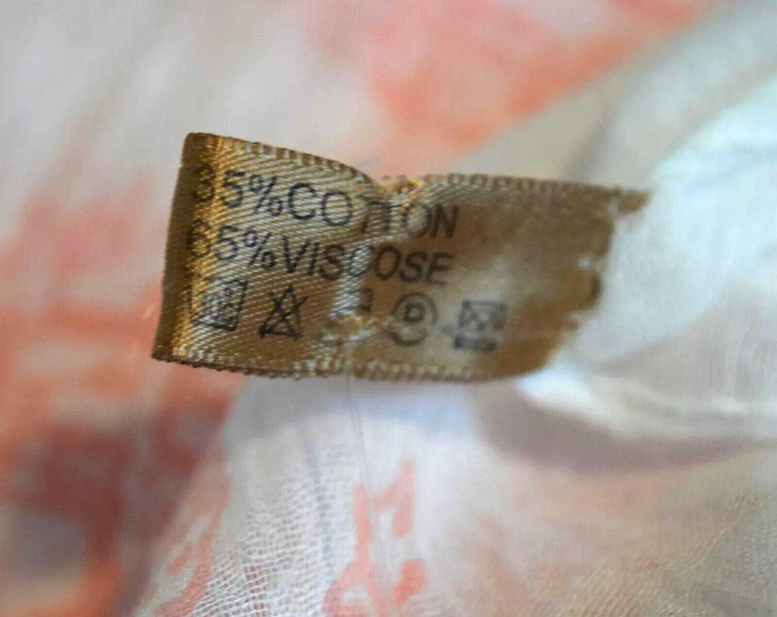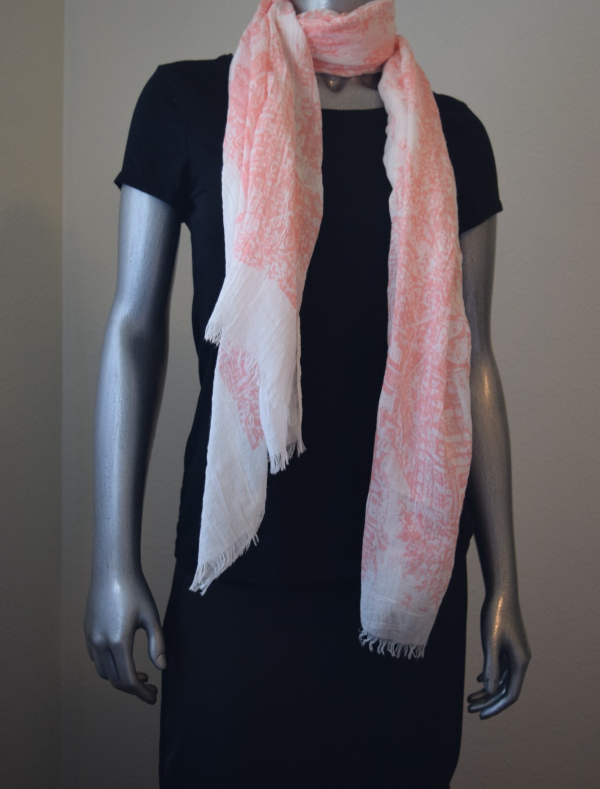 NECK SCARF - PINK / WHITE pre-owned in good condition fringed ends unlabeled measures approx 70 x 34 last photo shows material can also be used as head scarf, shawl or whatever