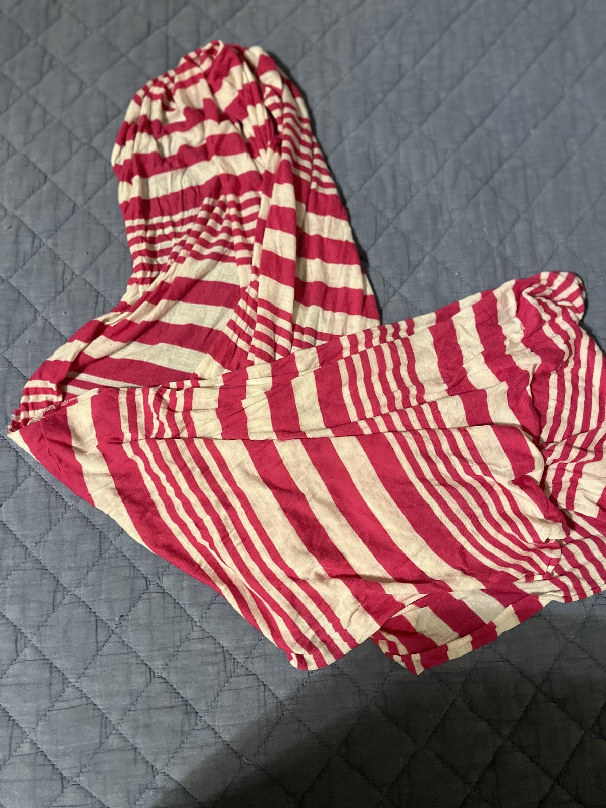 This scarf is so versatile and cozy! The pink and white stripes add a pop of color to any outfit. I love how soft it feels and how many ways I can style it.