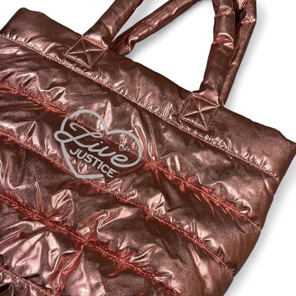 Pink metallic faux leather Live Justice tote bag with logo detail #y2kfashion #2000s