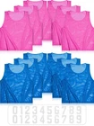 Features: Breathable and comfortable: These pennies for soccer are mainly made of nylon mesh, which is skin-friendly, has good air permeability, good for the evaporation of sweat, and you won't feel any burden when you wear them while exercising, offering you a comfy and cool wearing experience. Extensive usage: These team pinnies come in rose red and blue. These 2 colors are easy to distinguish, so that players can quickly recognize their teammates on the court, making them a good tool for learning about various balls and sports. They are a general size, suitable for adults and teenagers, so they can also be worn by families for outdoor sports or parties. Specifications: Main material: nylon mesh Color: rose red, blue Package includes: 12 x Nylon mesh vests 20 x Heat transfer numbers Note: Manual measurement, please allow slight errors on size. The color may exist slight difference due to different screen display. Please wash gently and avoid pointed items. You will receive: you will receive 12 pieces of nylon mesh scrimmage team pinnies in 2 colors and 20 pieces of iron on heat transfer numbers in the package, adequate quantity to meet your various needs Various styles: these team pinnies come in 2 classic colors, 6 pieces of each color, with the heat transfer numbers from 0 - 9, 2 pieces per number, you could select and match them as you like to prepare for various ball games Breathable material: these sports jerseys are mainly made of quality nylon mesh, featuring lightweight, good air permeability, wear resistance and not easy to break or fade, providing you with a flexible, soft and comfortable wearing experience during sports training Suitable Size: these basketball jerseys measure approx. 26 inches in length, which is suitable for most people to wear outdoors, such as long distance running, playing basketball, football, volleyball and other ball games or playing hide and seek and so on Use instructions: first select a number and place it side down on the nylon mesh vests, let the temperature rise, then press the number hard for 5 - 10 seconds, finally after cooling off, the protective film can be removed; Each number is separated, so you don't have to cut out the pattern, which saves time and effort, and is suitable for DIY beginners to exercise their practical ability