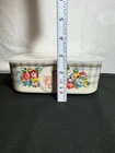 The Pioneer Woman Ceramic Food Storage Container in the Sweet Romance pattern is perfect for keeping your kitchen organized and stylish. This rectangular container measures 7.25 inches in width, 5 inches in length, and 2.75 inches in height, making it ideal for storing a range of food items. It features air vents, easy-to-clean surfaces, and is dishwasher safe, ensuring that your food stays fresh. *lid has small crack, not broken off, lid still works perfect. See pictures.