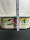 Keep your kitchen fresh and organized with this beautiful Pioneer Woman ceramic food storage container, featuring the Sweet Romance pattern. The container has a rectangular shape and measures 8.5 x 6.75 x 3.5 inches in capacity. It comes with a plastic push-on lid and has air vents for easy cleaning. *lid has scratches. Works perfect.